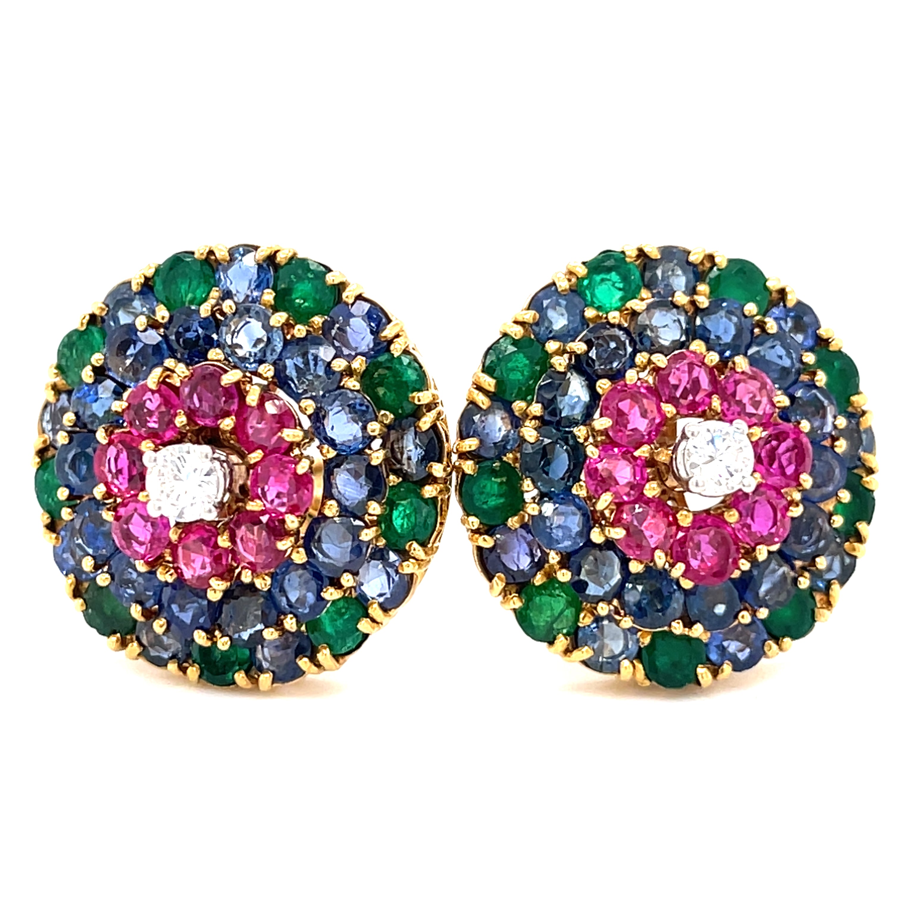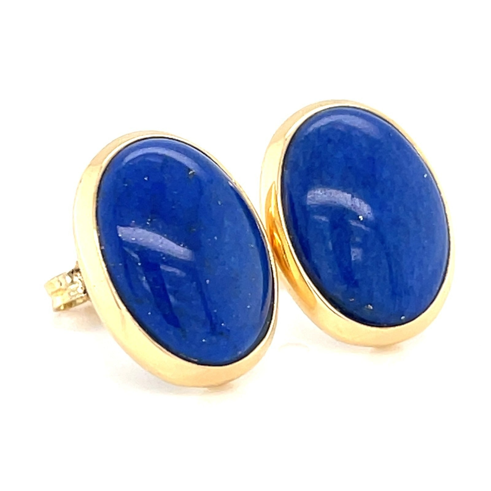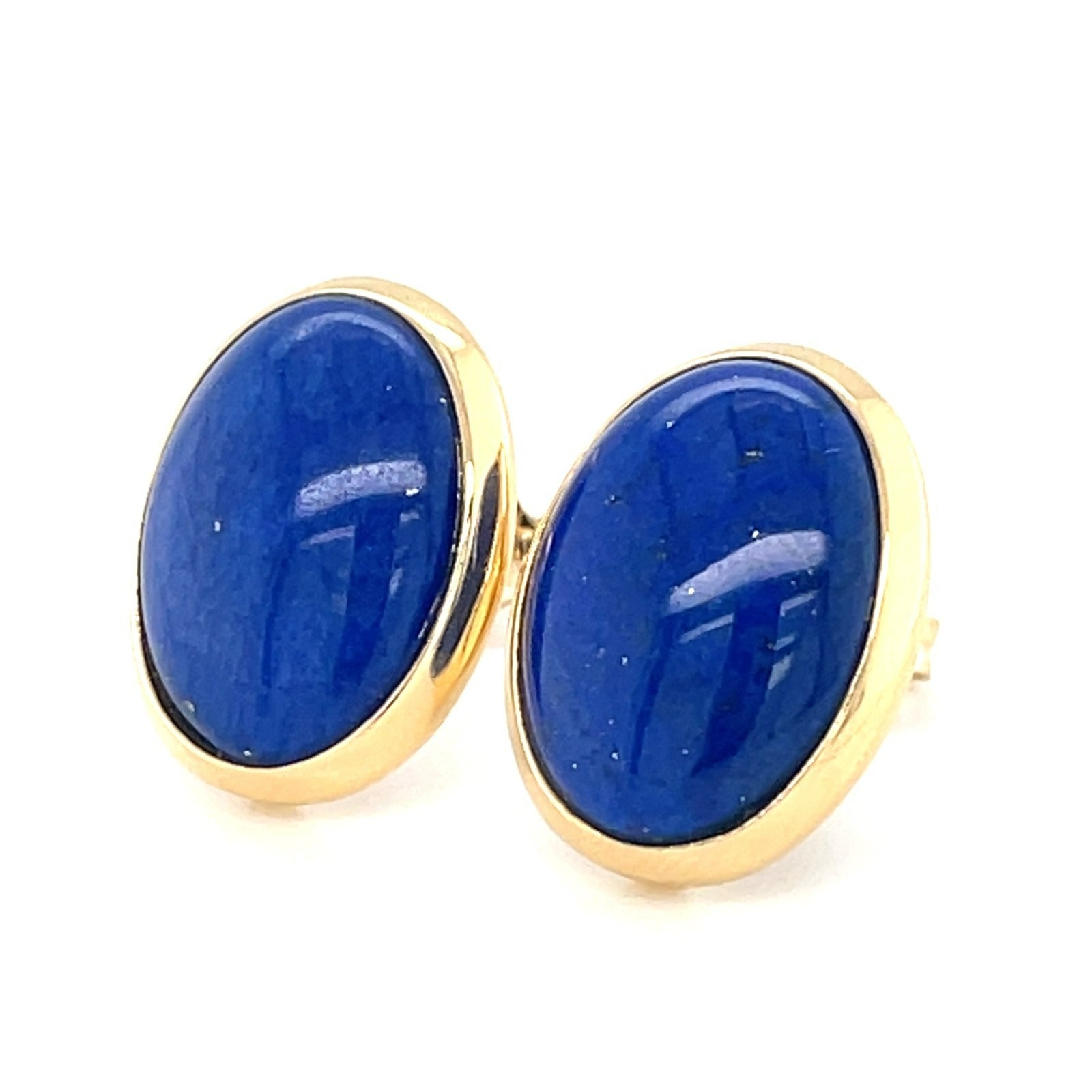 18k Yellow Gold Turbo Shell Earrings W/Sapphire Cabochons by Seaman Schepps