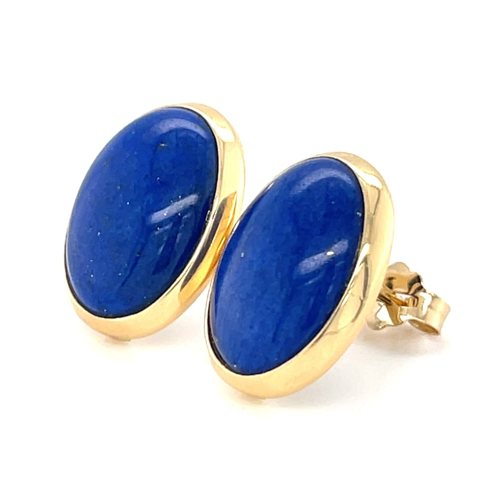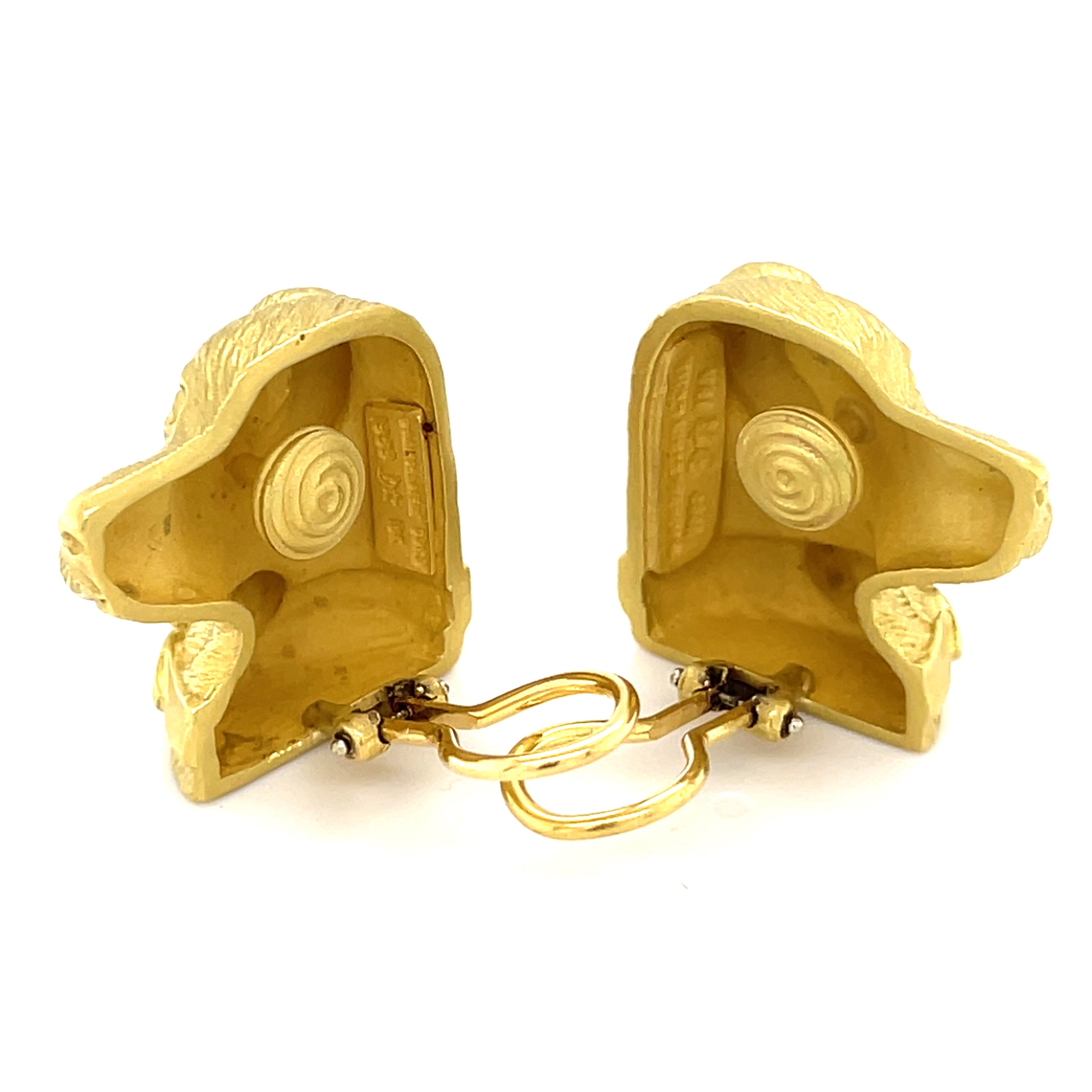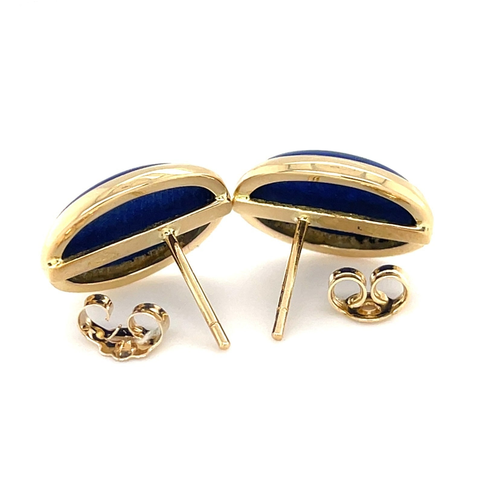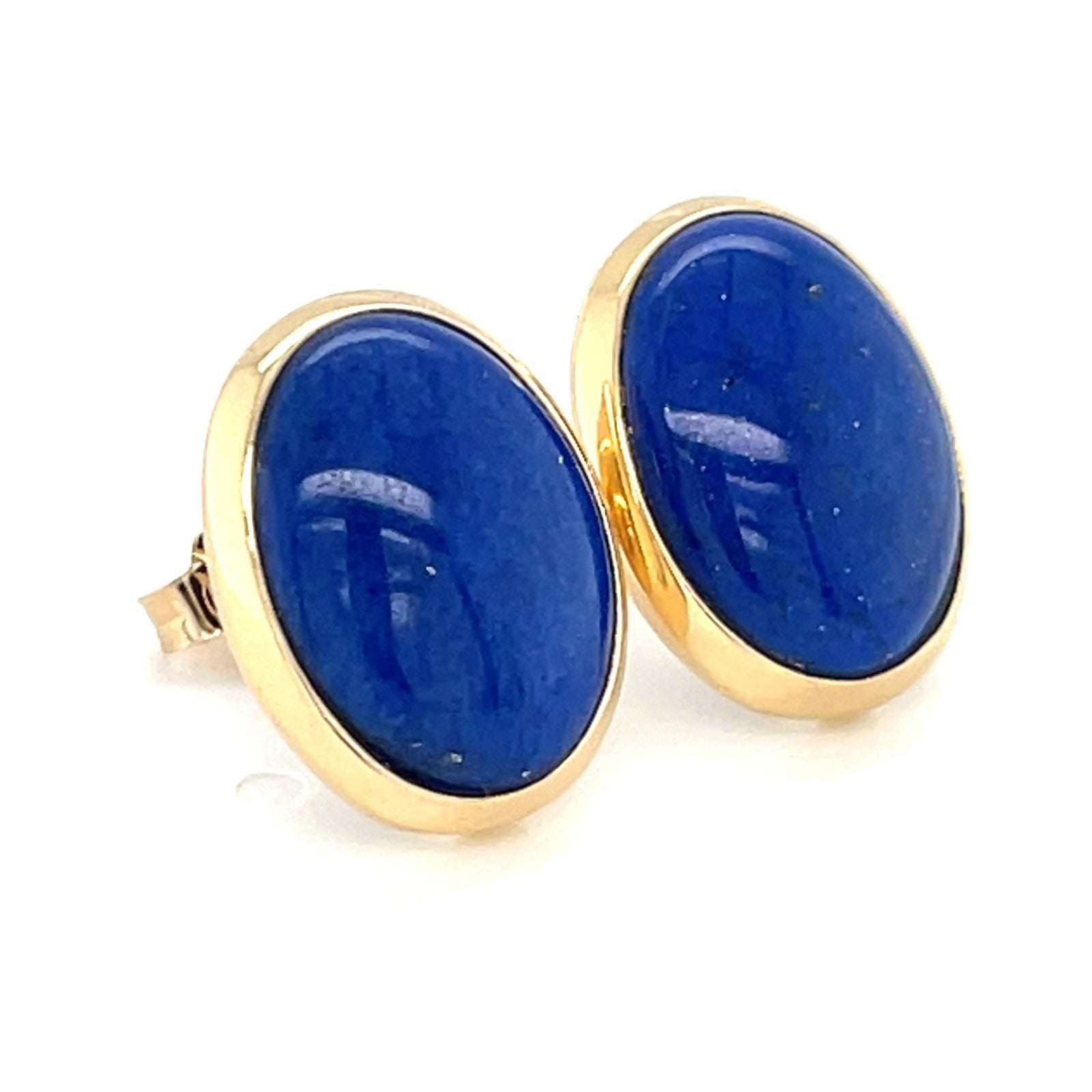 18k Yellow Gold Turbo Shell Earrings W/Sapphire Cabochons by Seaman Schepps