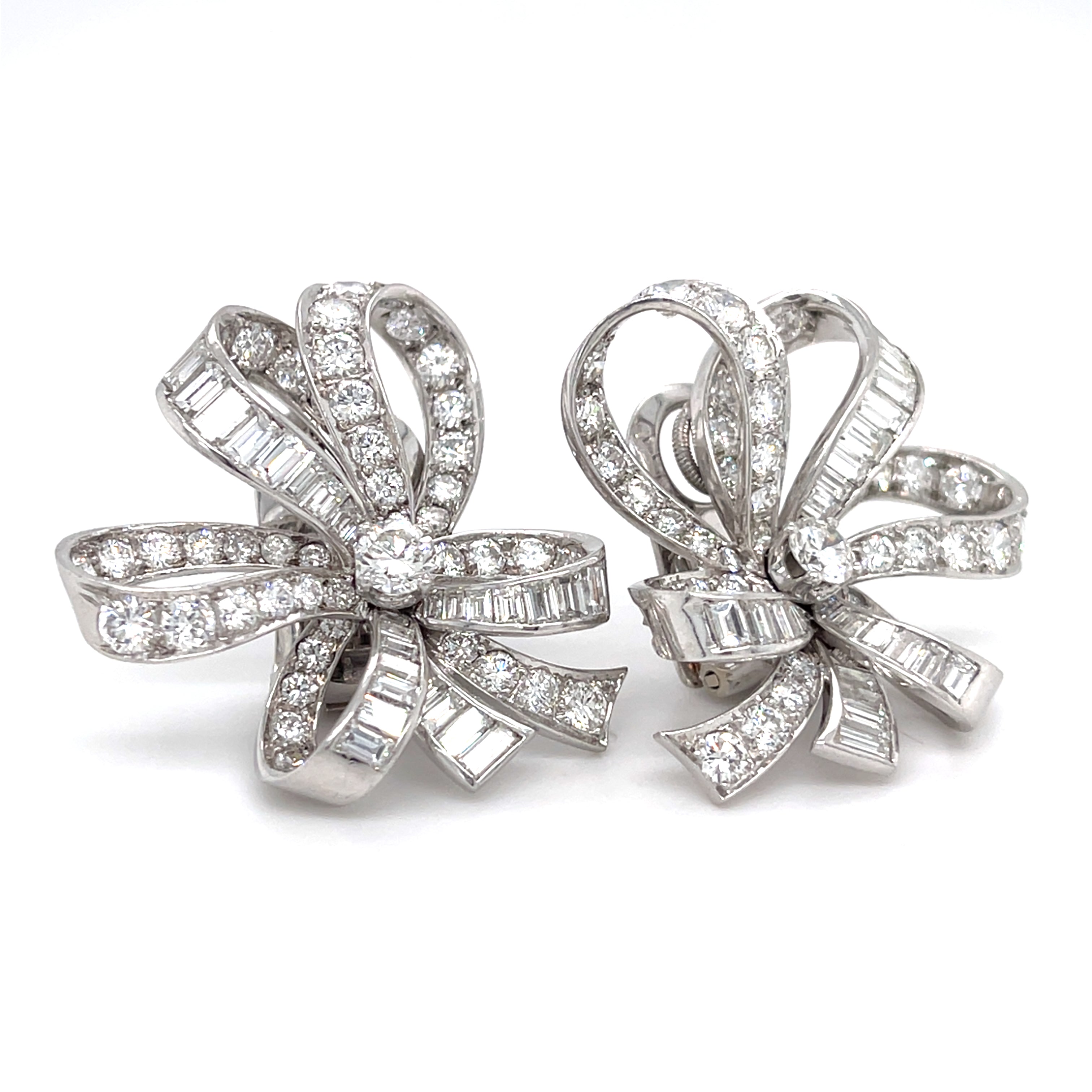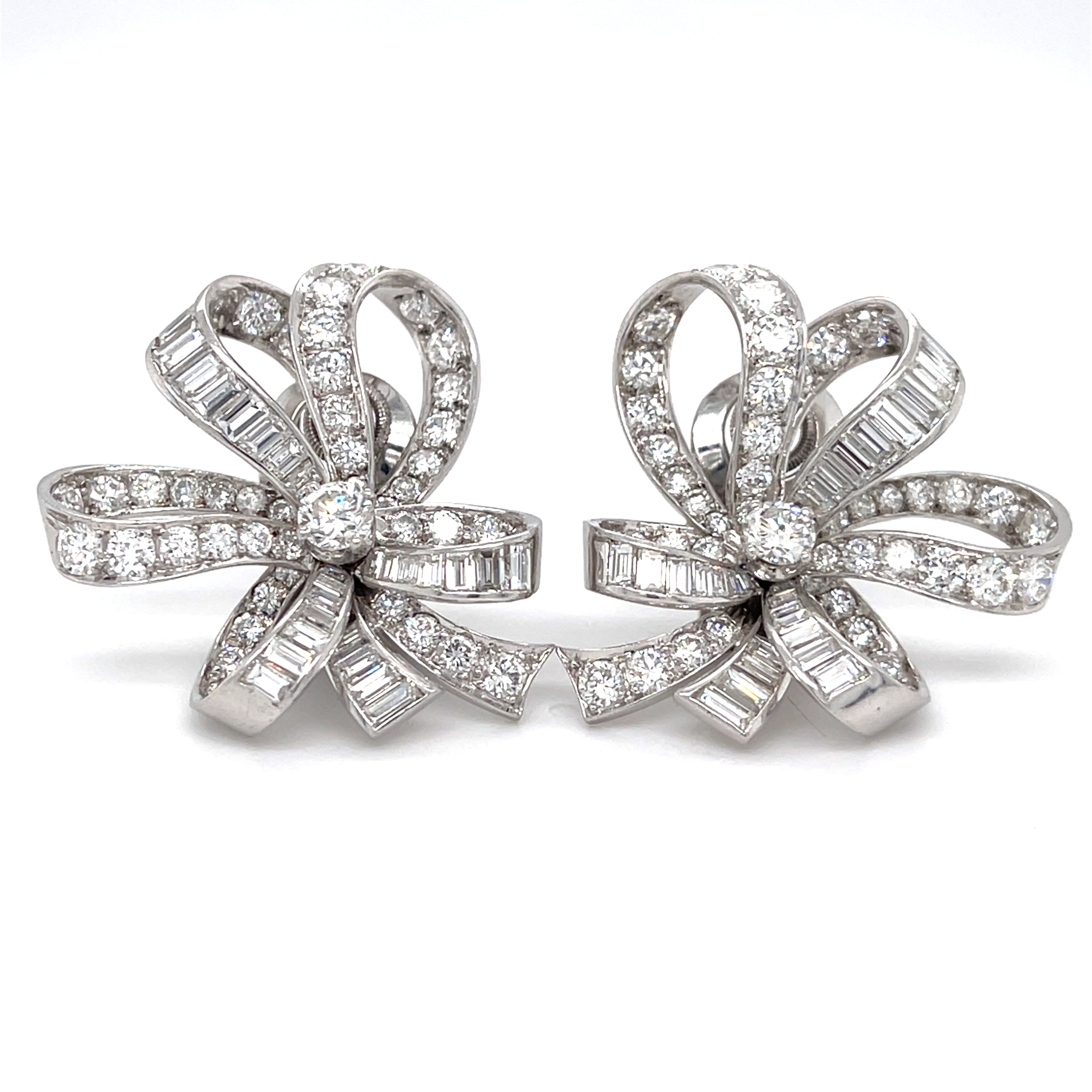 Platinum & 14k White Gold Convertible Earrings/Brooches w/ 6.95ct Diamonds, 26.8g