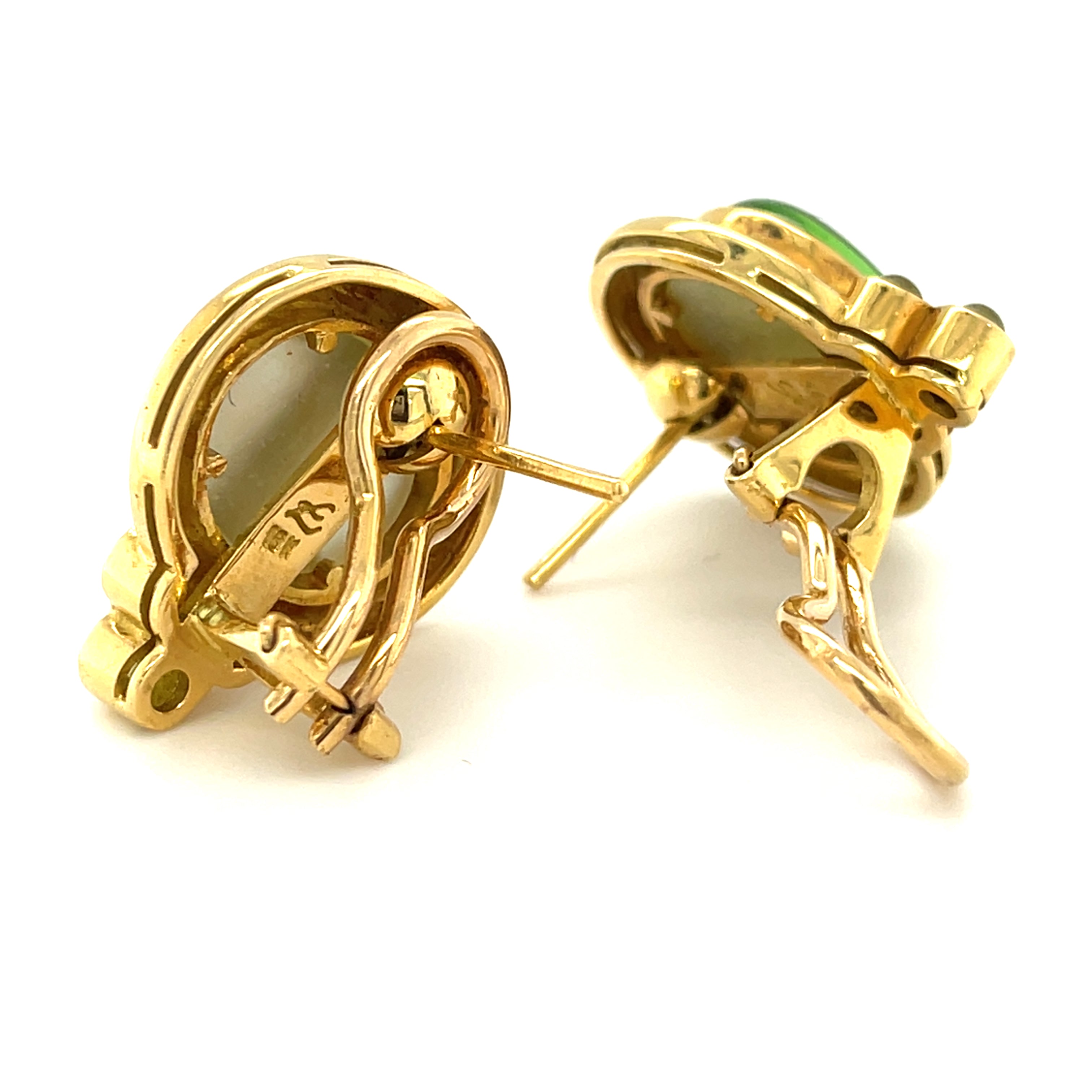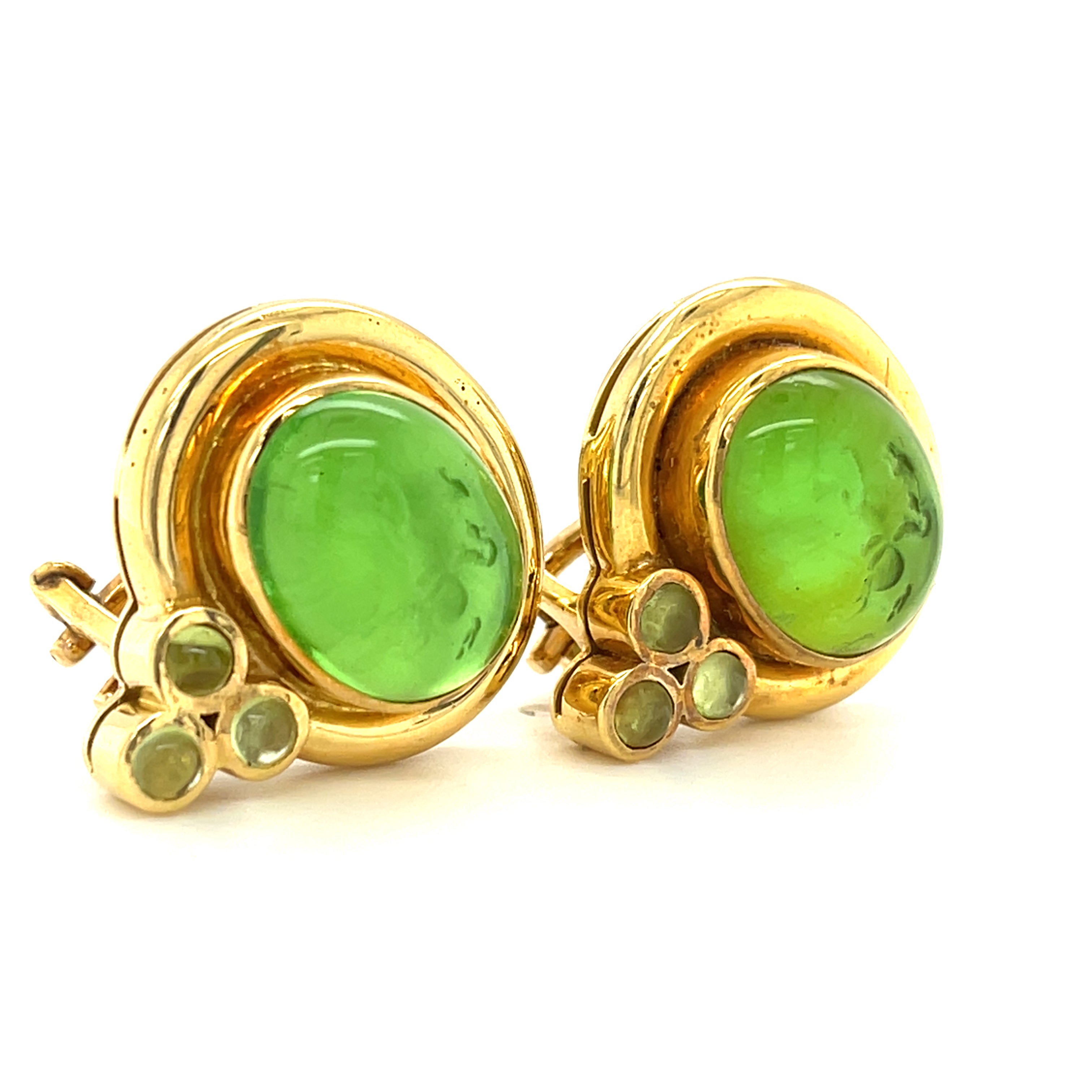 Elizabeth Locke 18k Yellow Gold Green Glass Intaglio and Peridot Accent Earrings