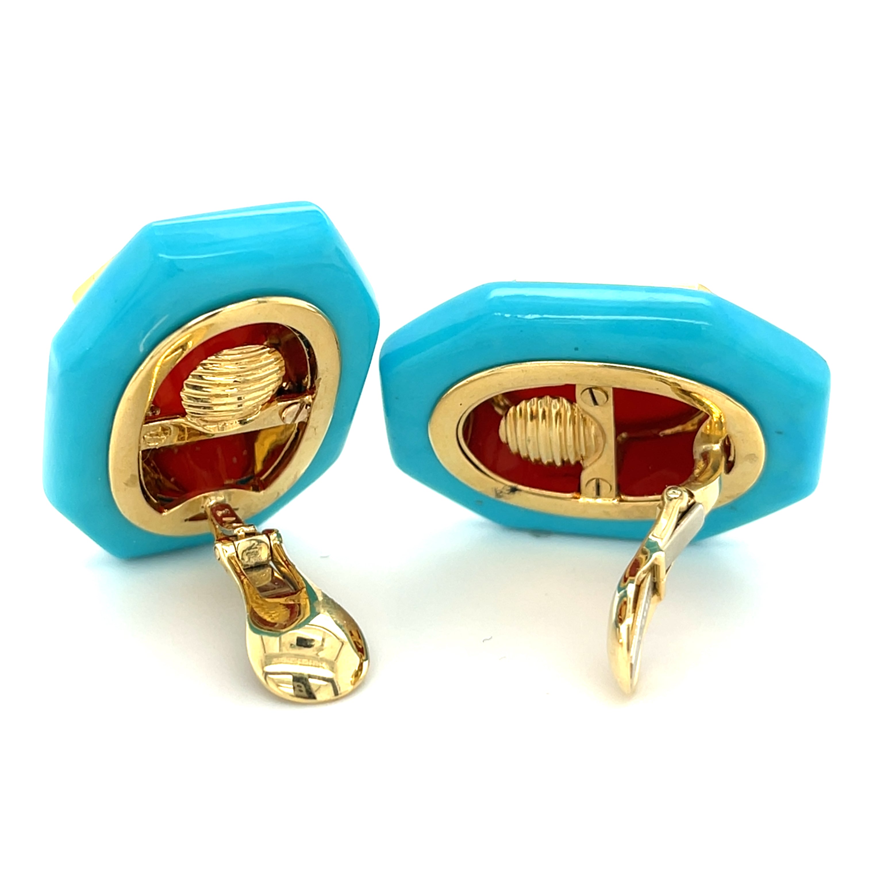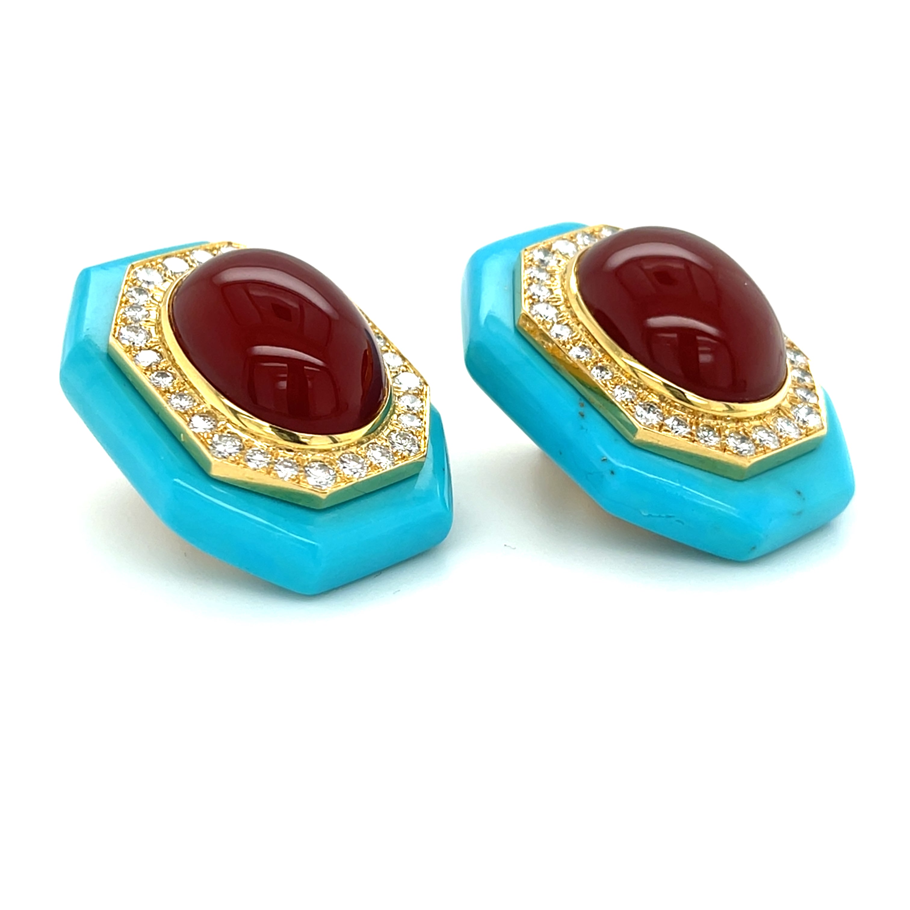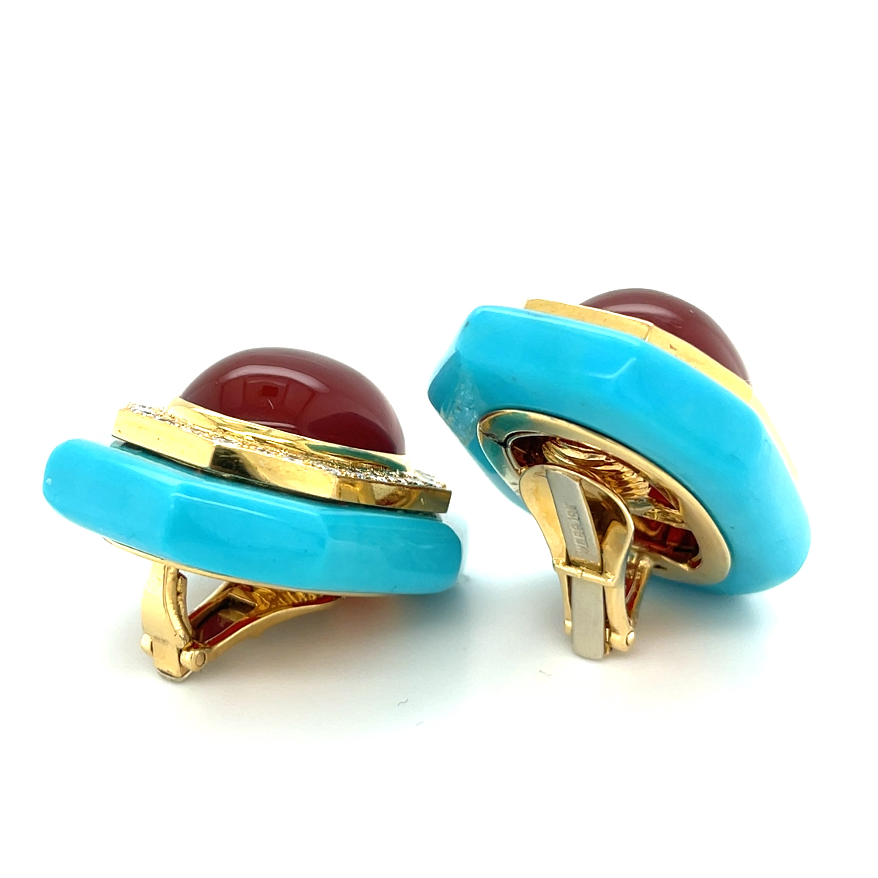 David Webb 18k Gold Turquoise, Carnelian, and Diamond Earrings w/ CoA