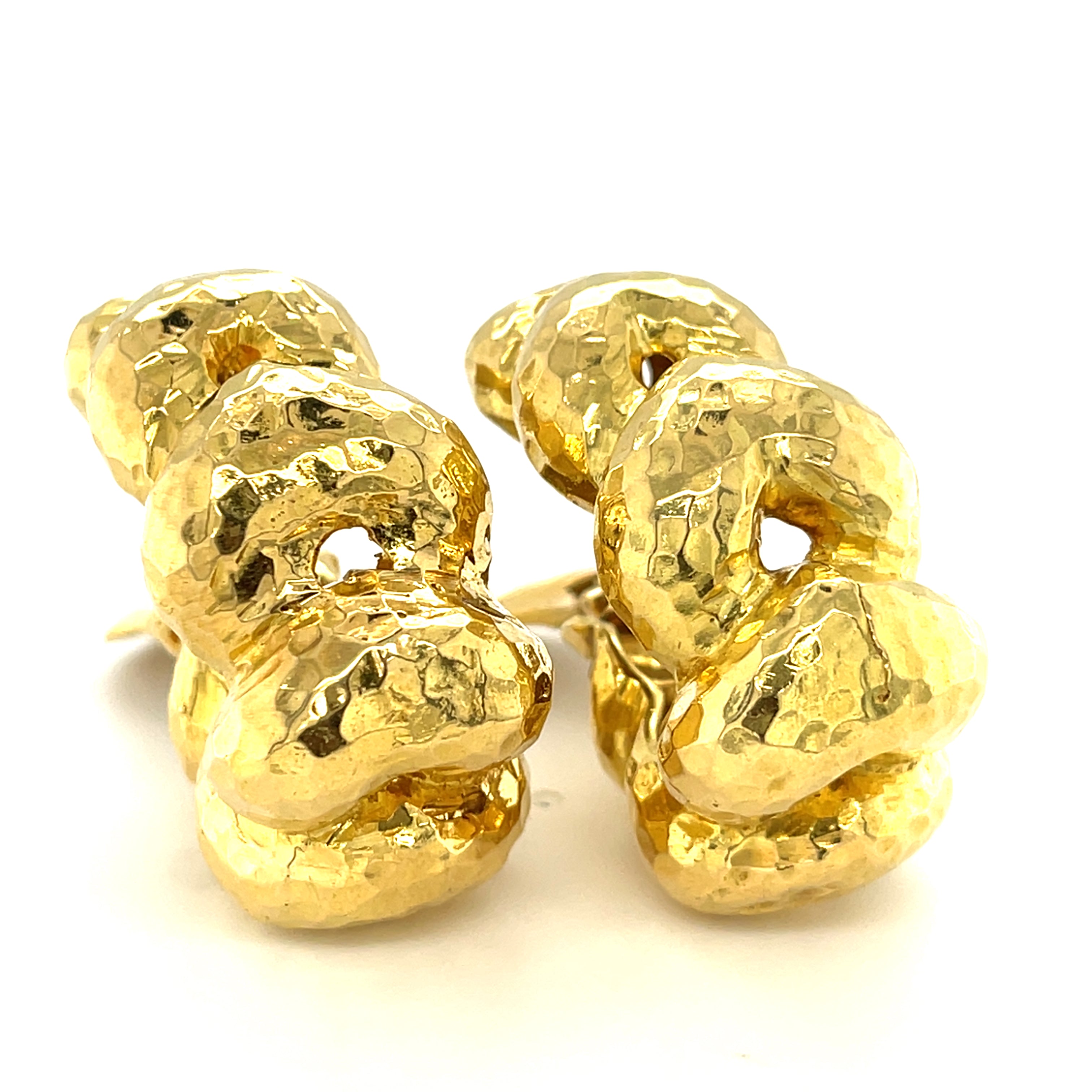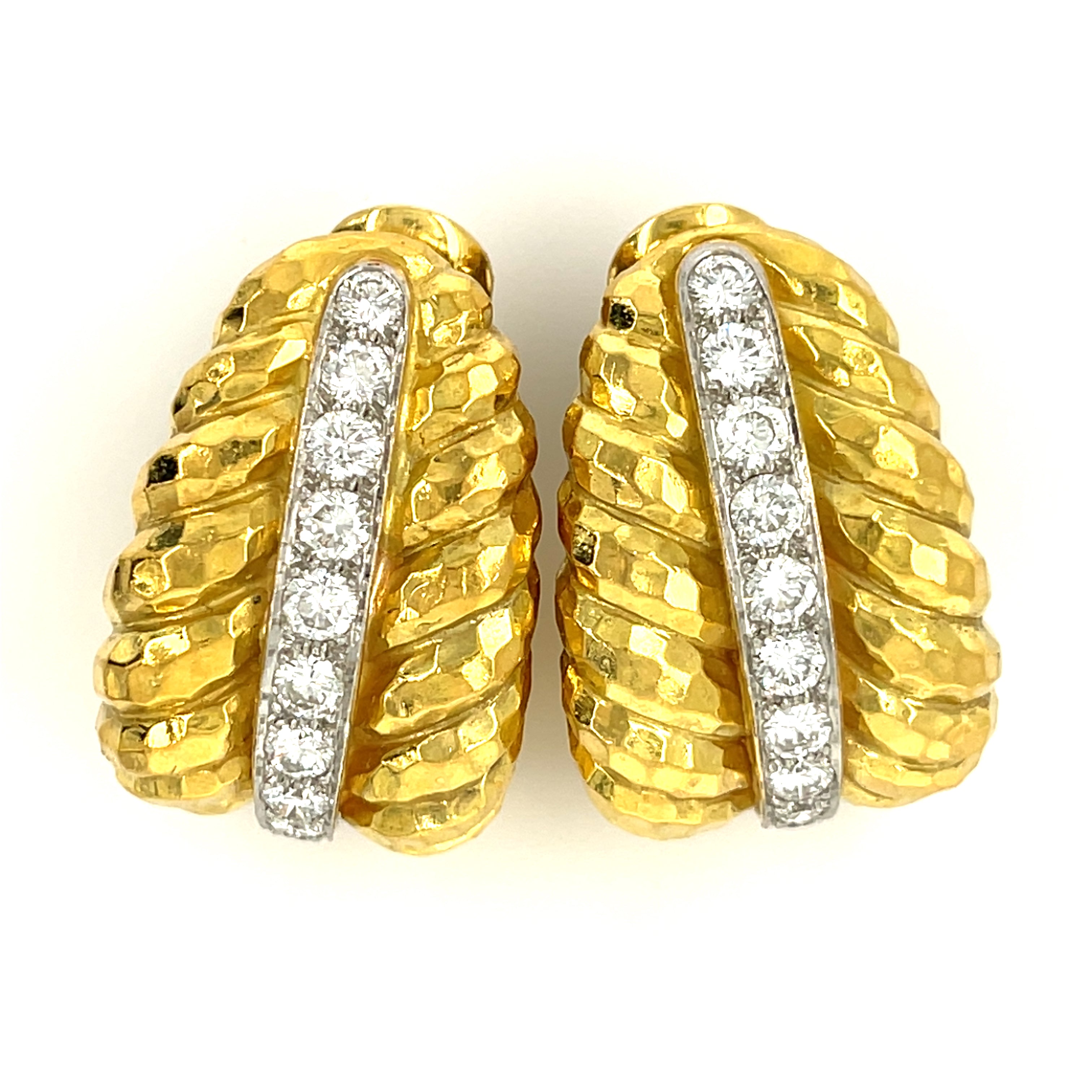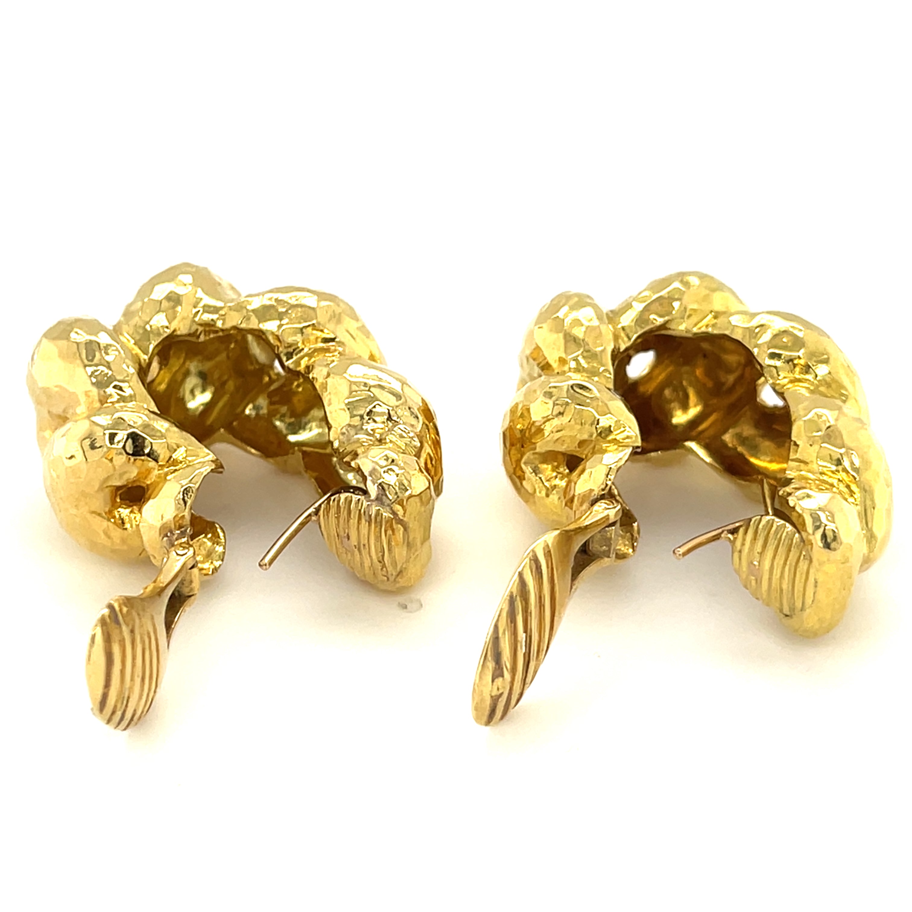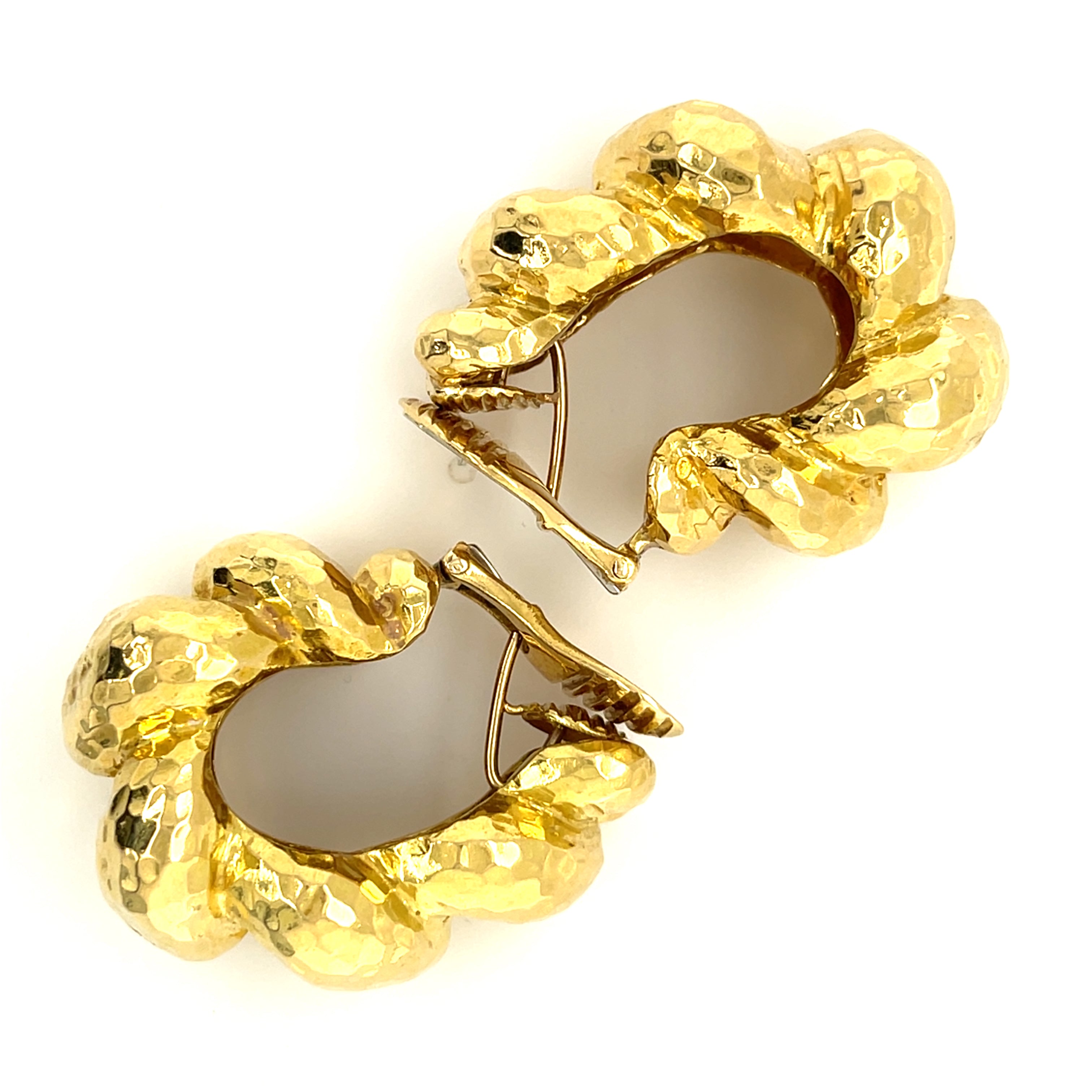 David Webb 18k Yellow Gold Hammered Hoop Earrings