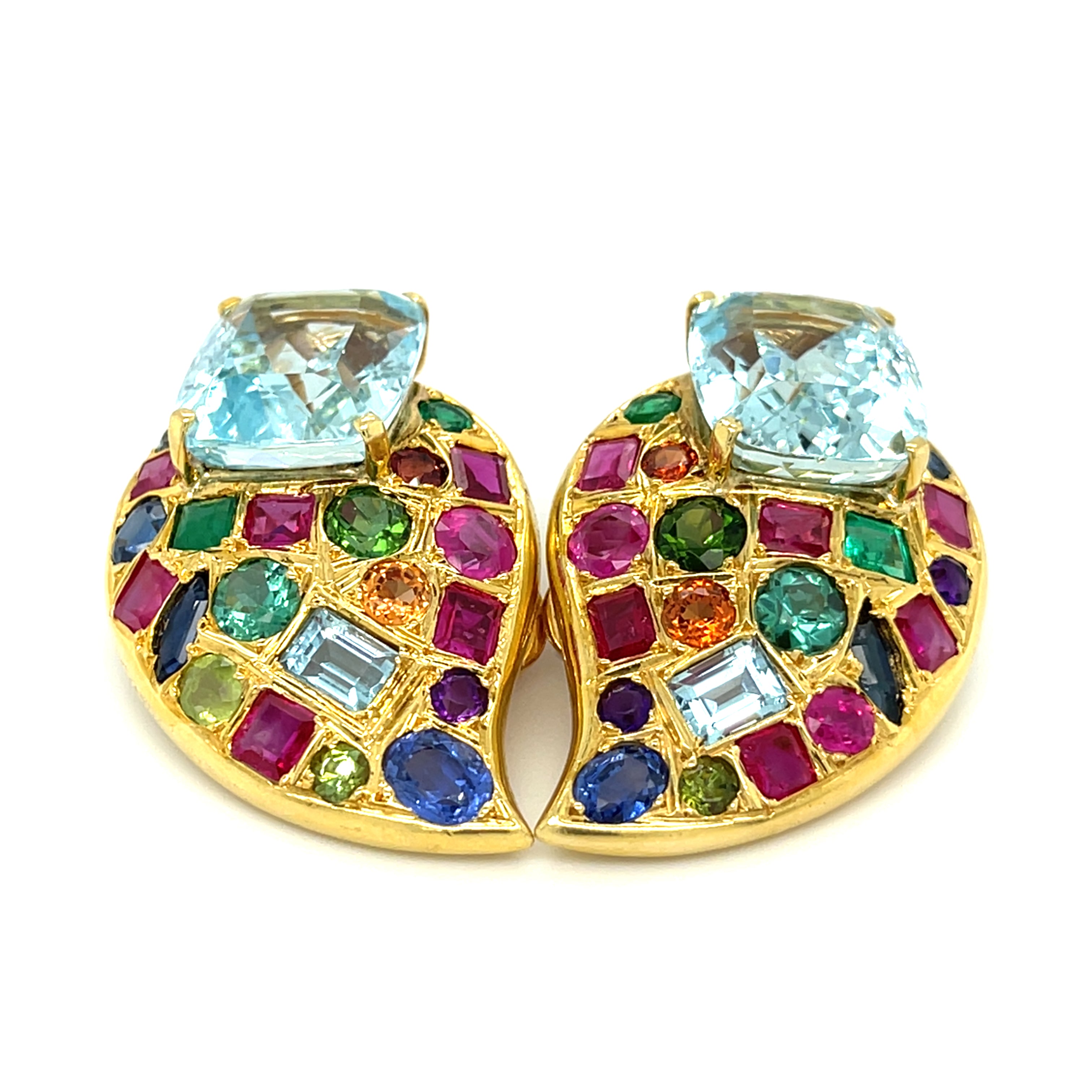 By Marilyn Cooperman 18k Yellow Gold Multicolor Gemstones Earrings 22.85 ctw