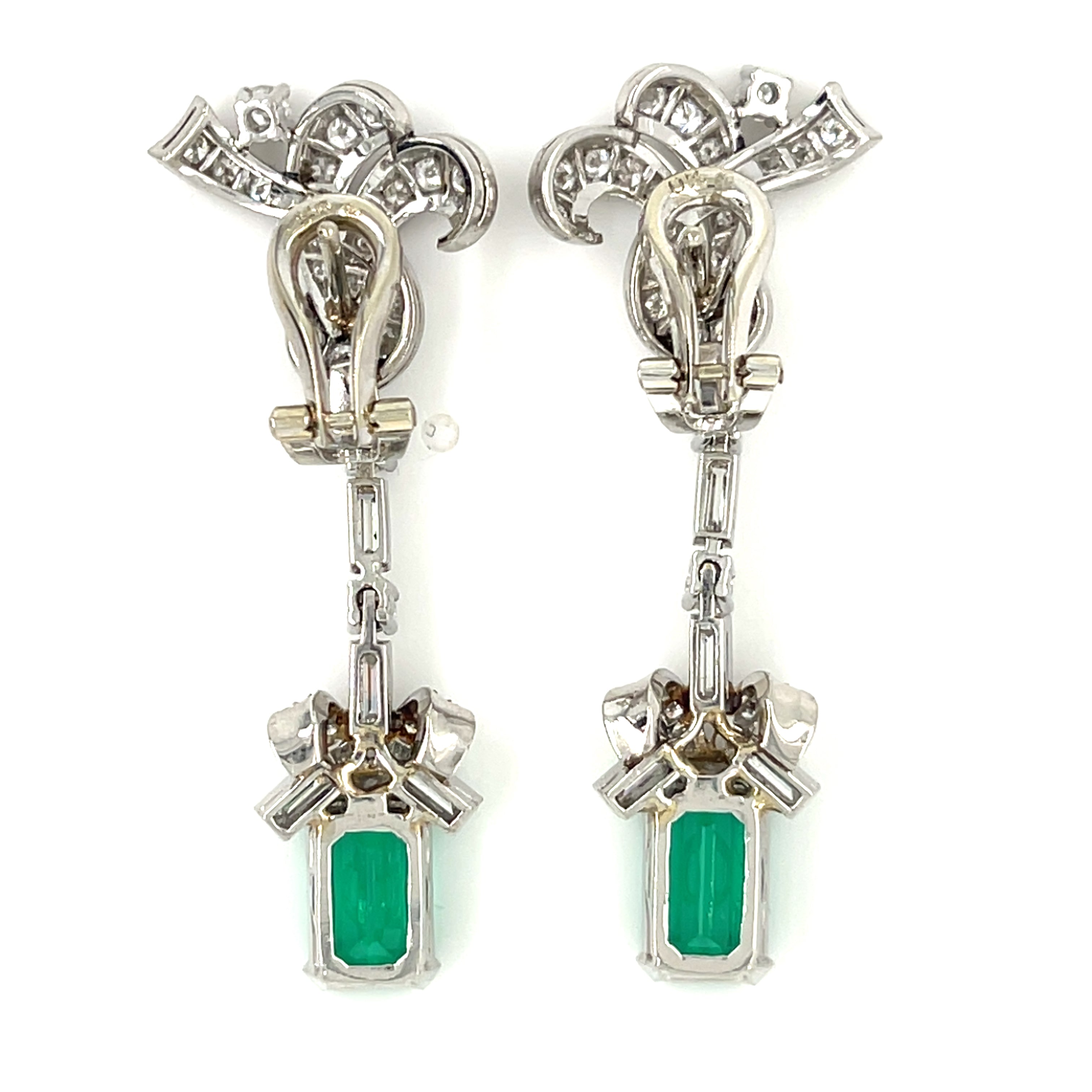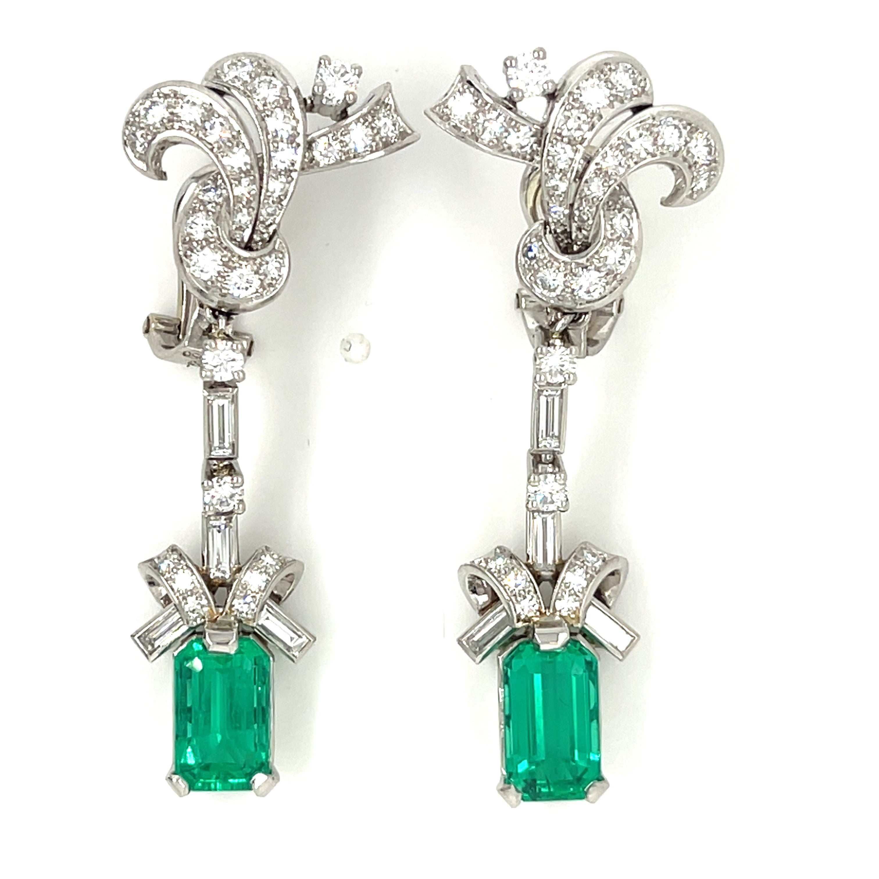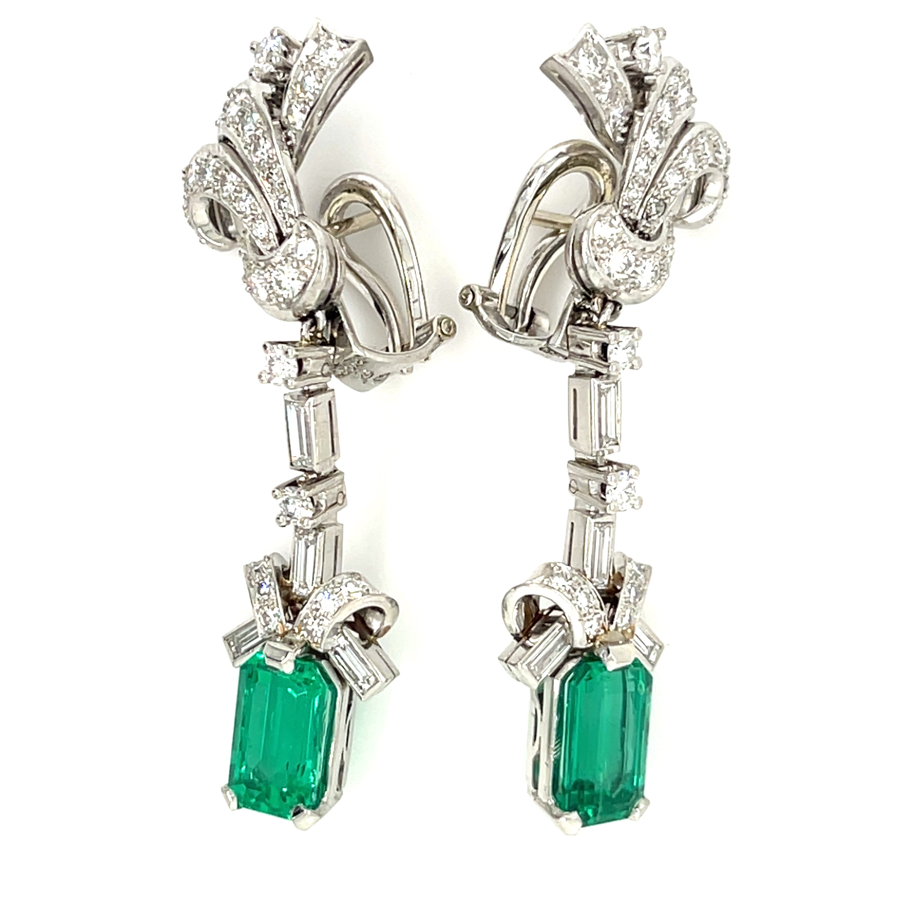 Platinum Fancy Emerald and Diamond Drop Earrings TCW = 5.1 cts