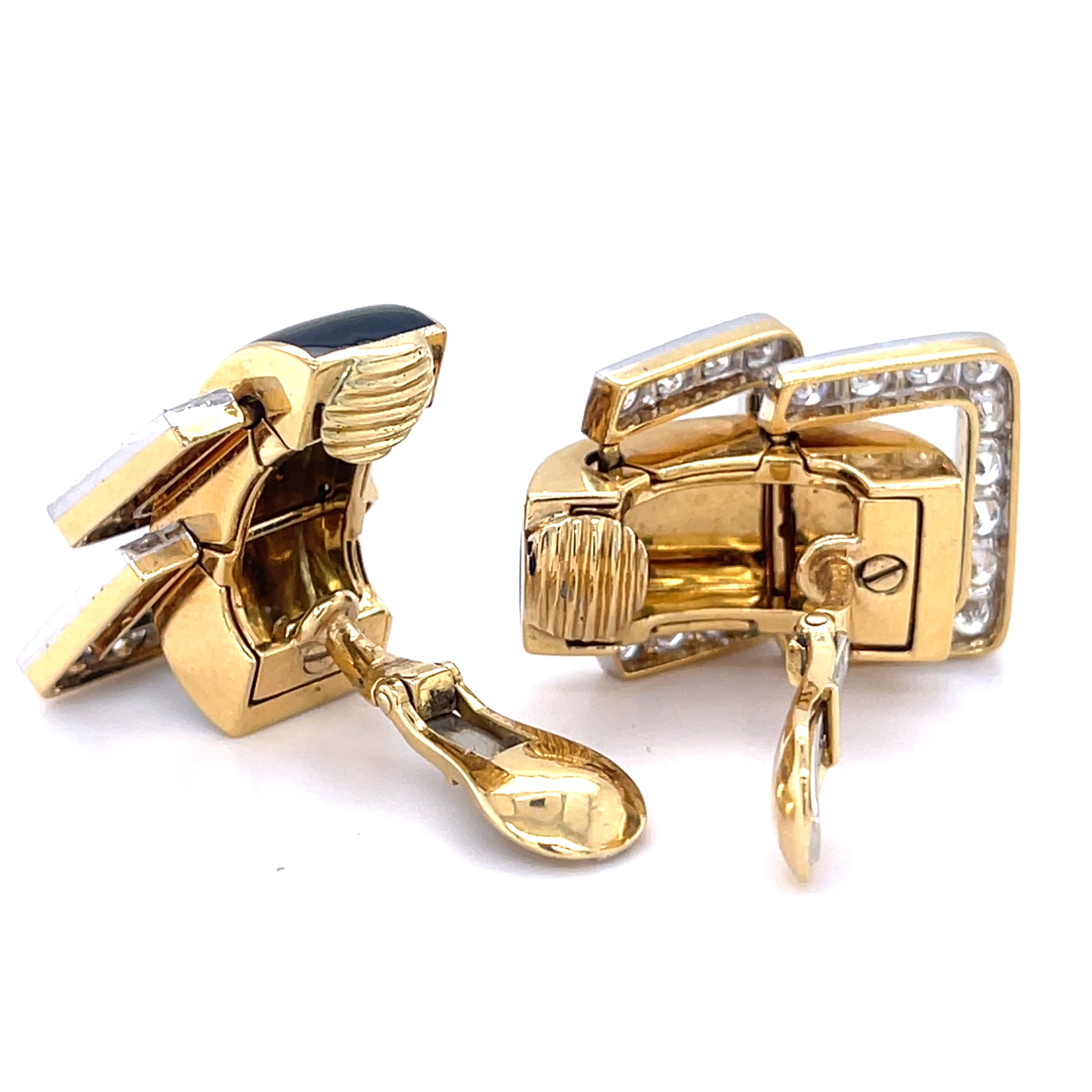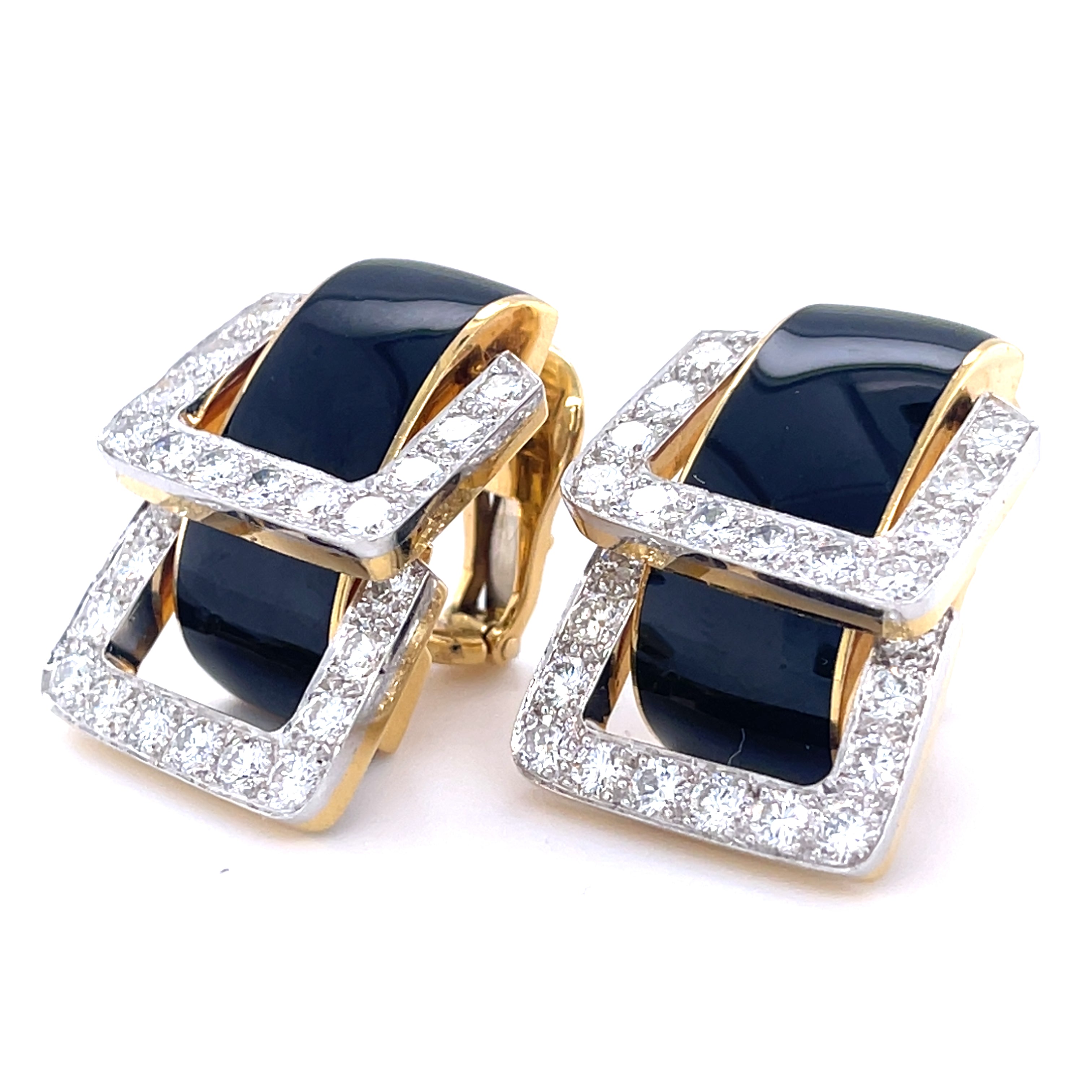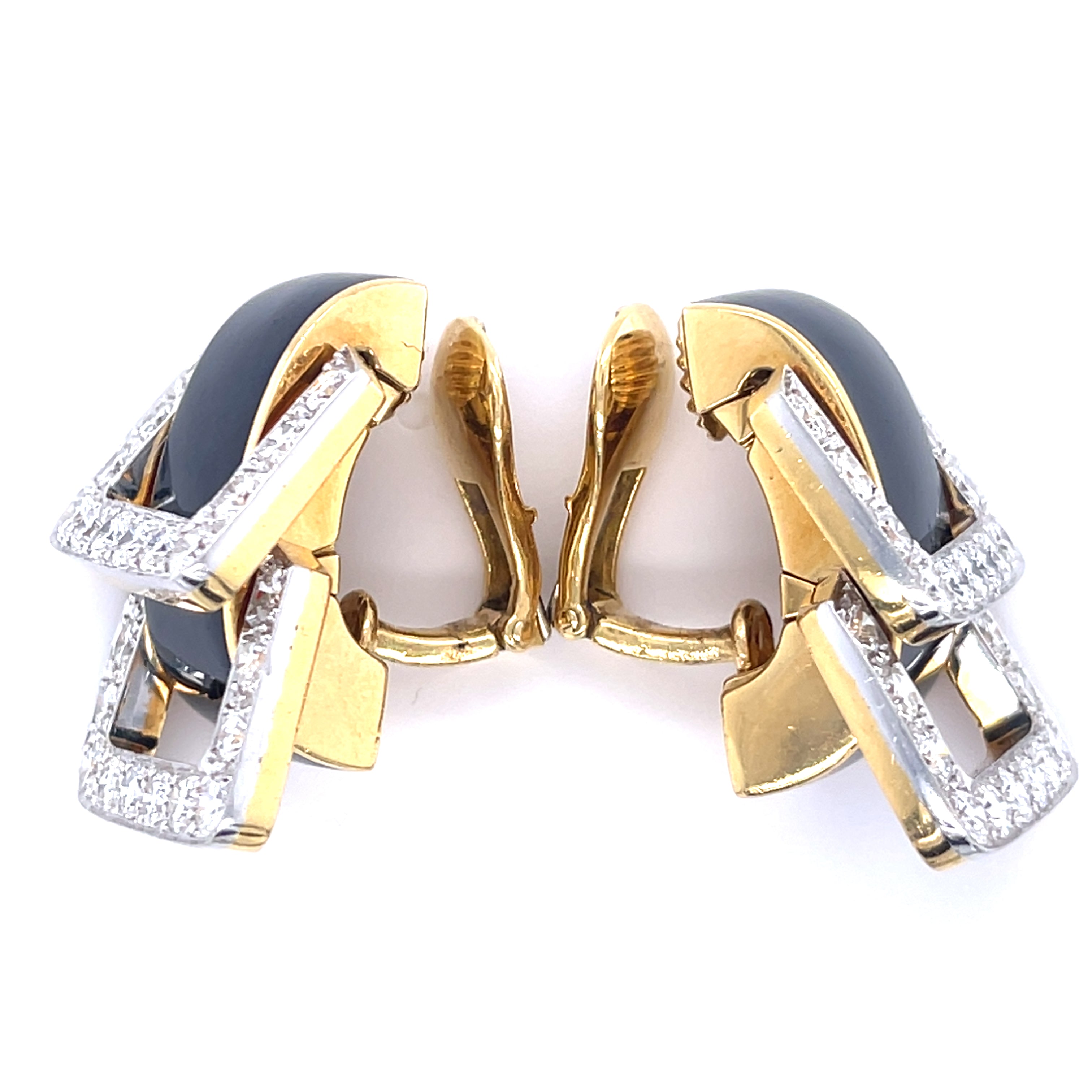David Webb Platinum & 18k Yellow Gold Onyx Diamond Doorknocker "Strap" Earrings