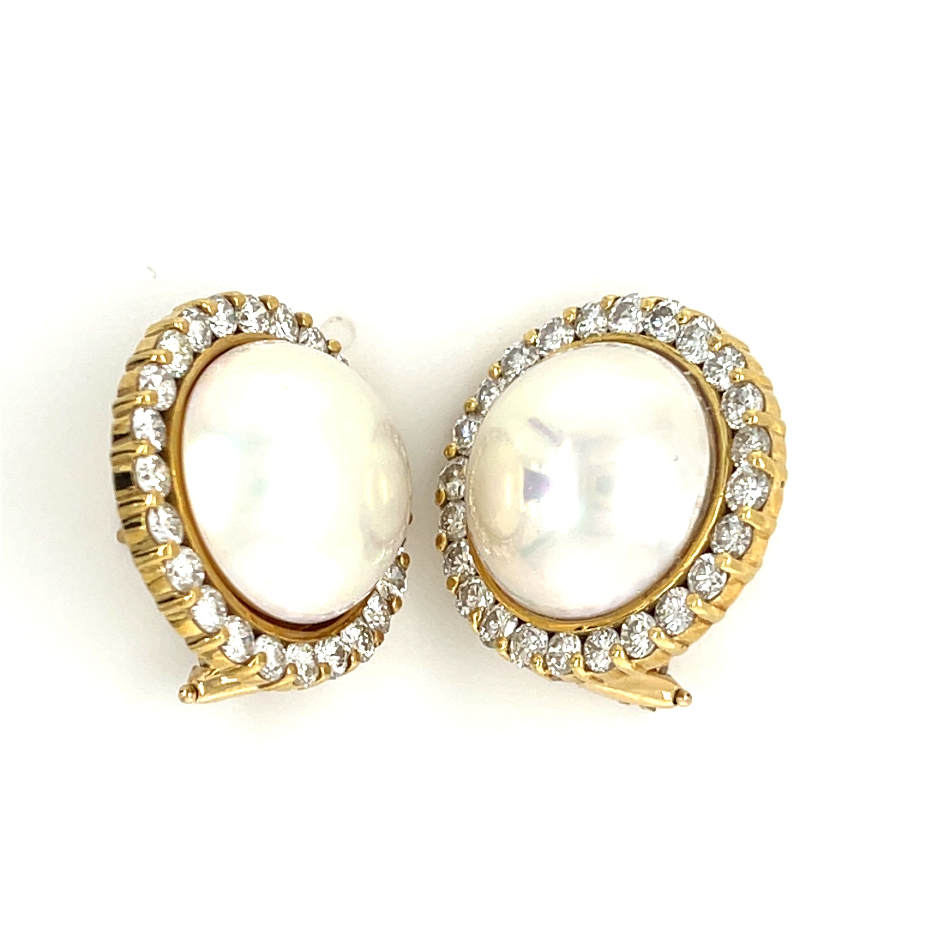 14k Yellow Gold Mabe Pearl and Diamond Earrings