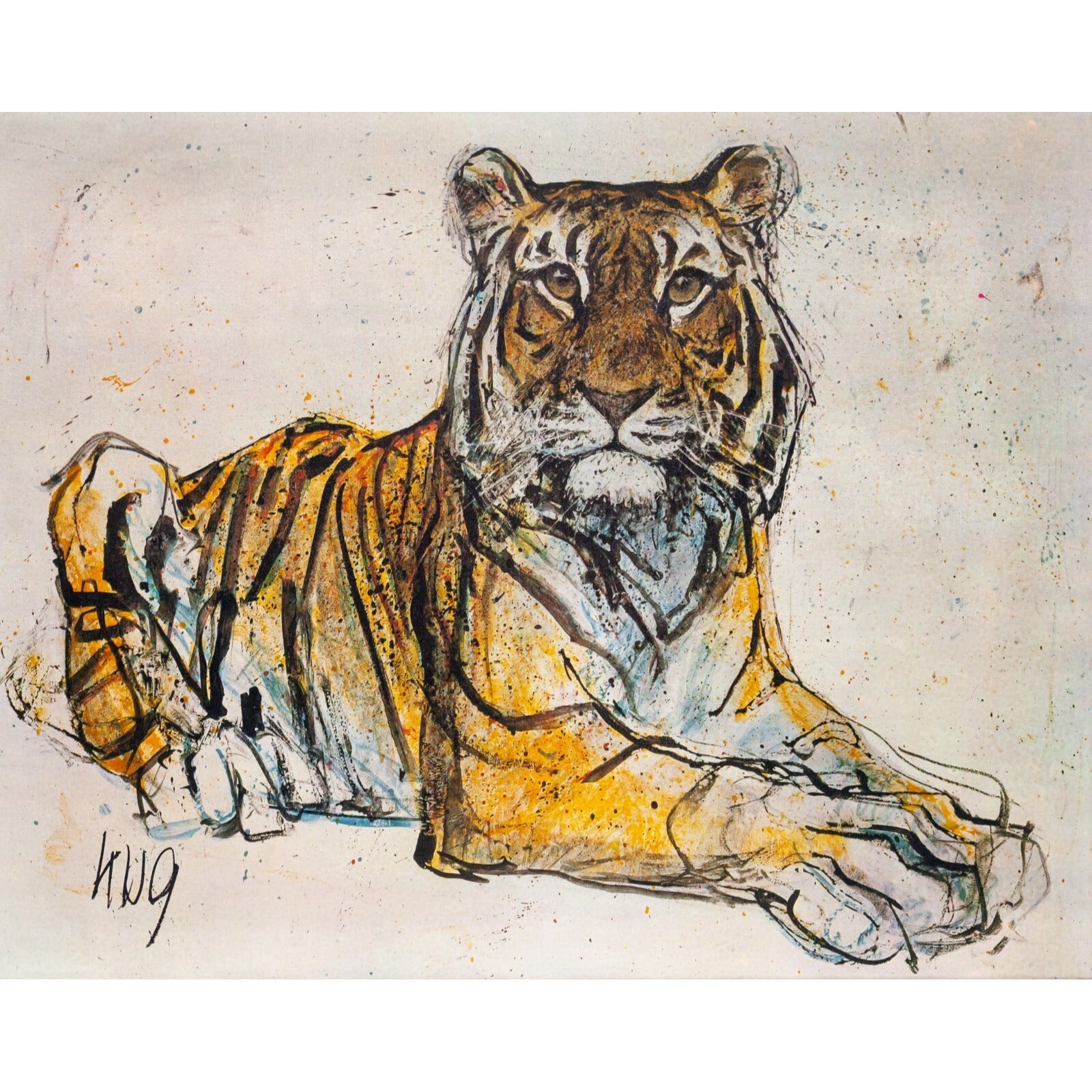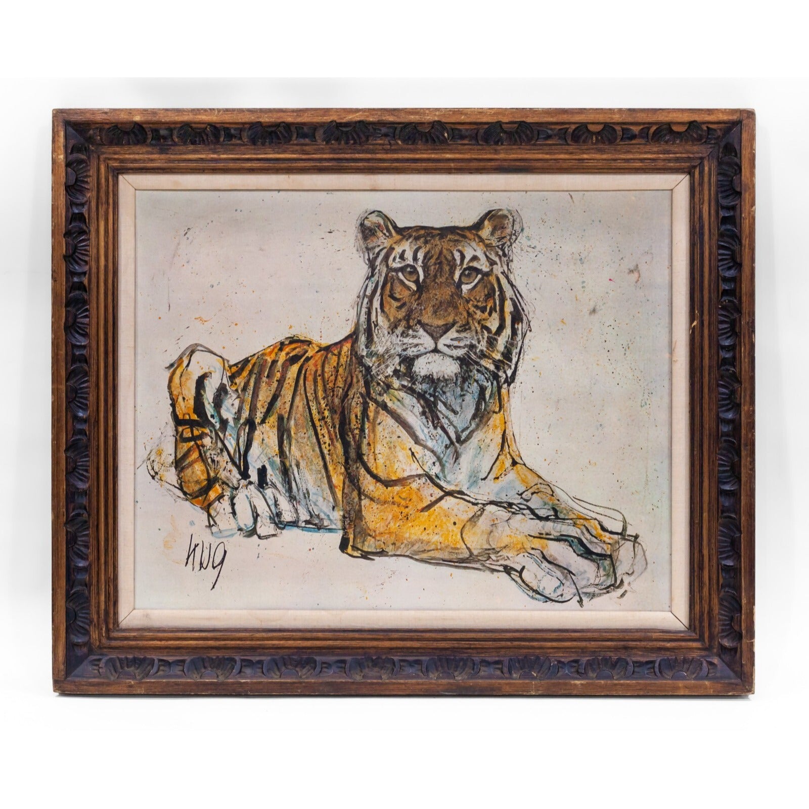 Reclining Tiger Portrait Giclee on Canvas by Fritz Randolph Hug 36" x 30"