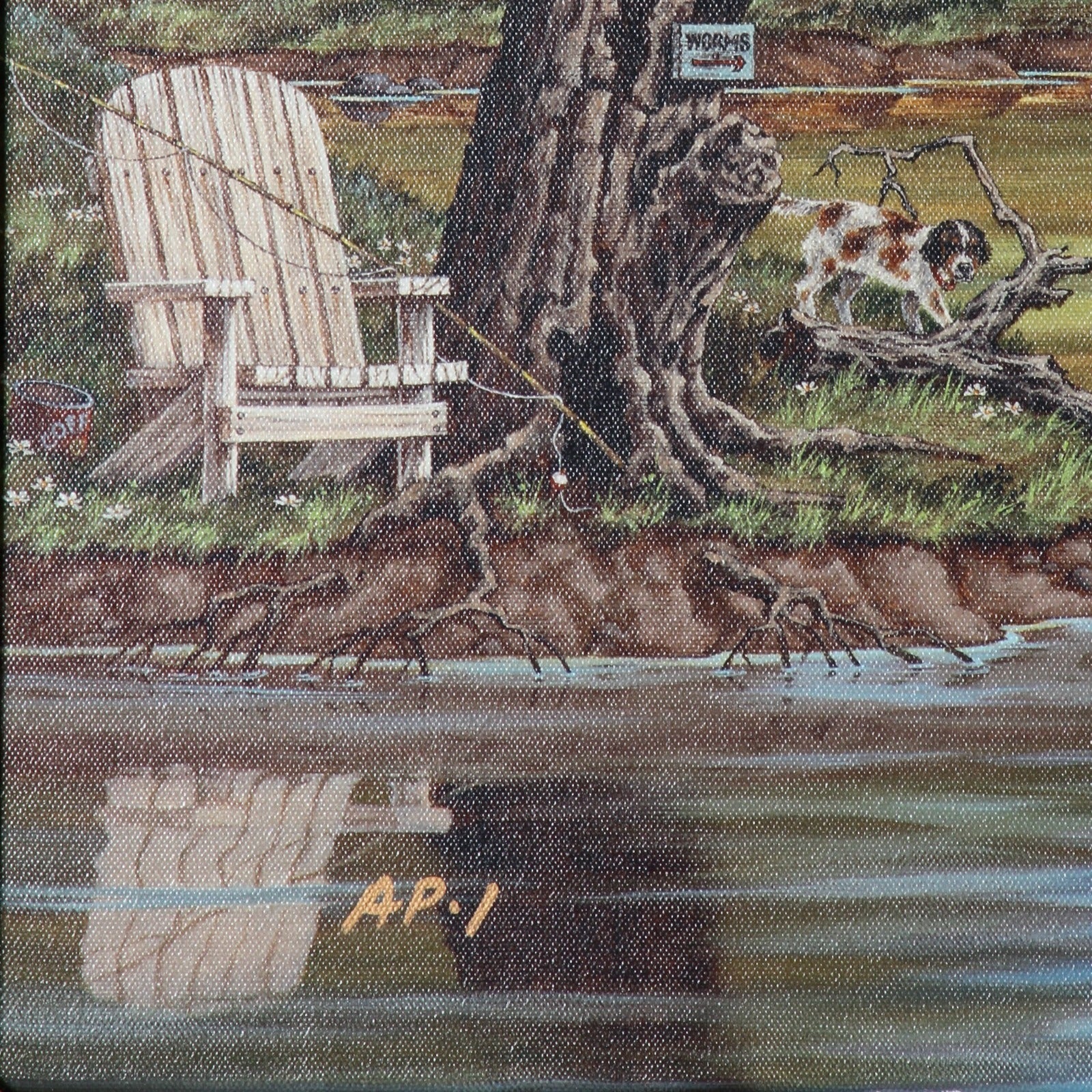 "Gone Fishing" by Jessica Rice Embellished Giclee Print on Canvas