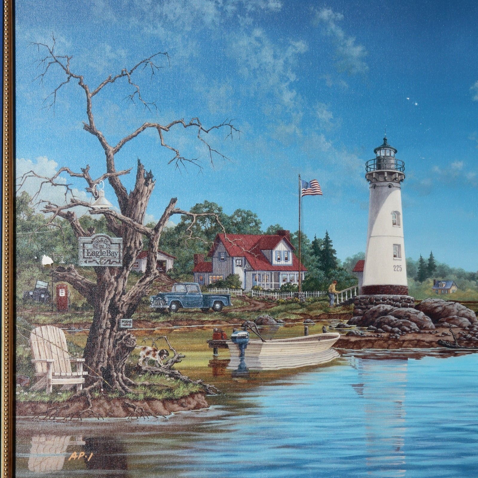 “Lighthouse at Eagle Bay” by William Kreutz - Framed Giclee on Canvas 48” x 30"
