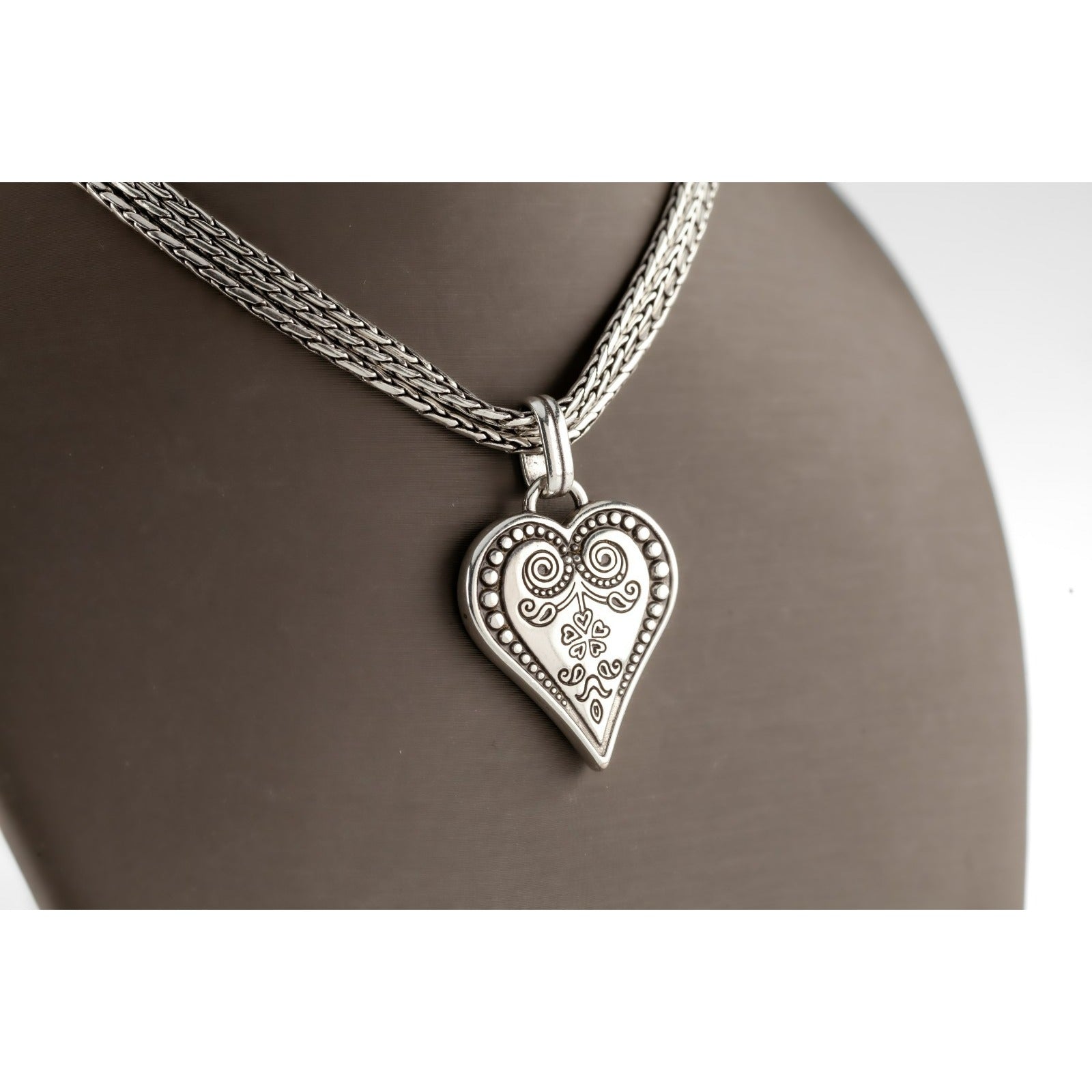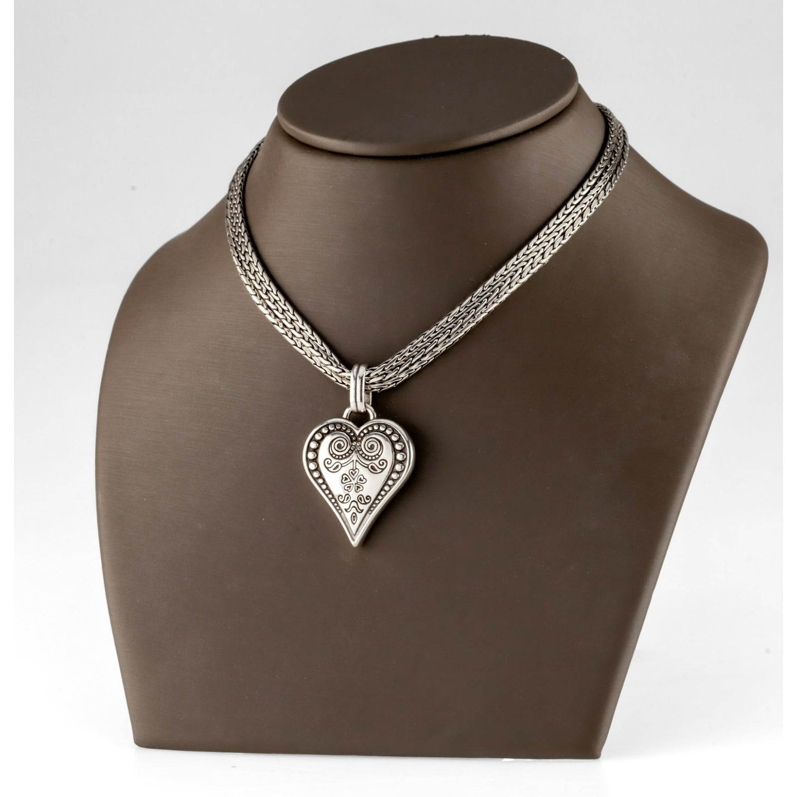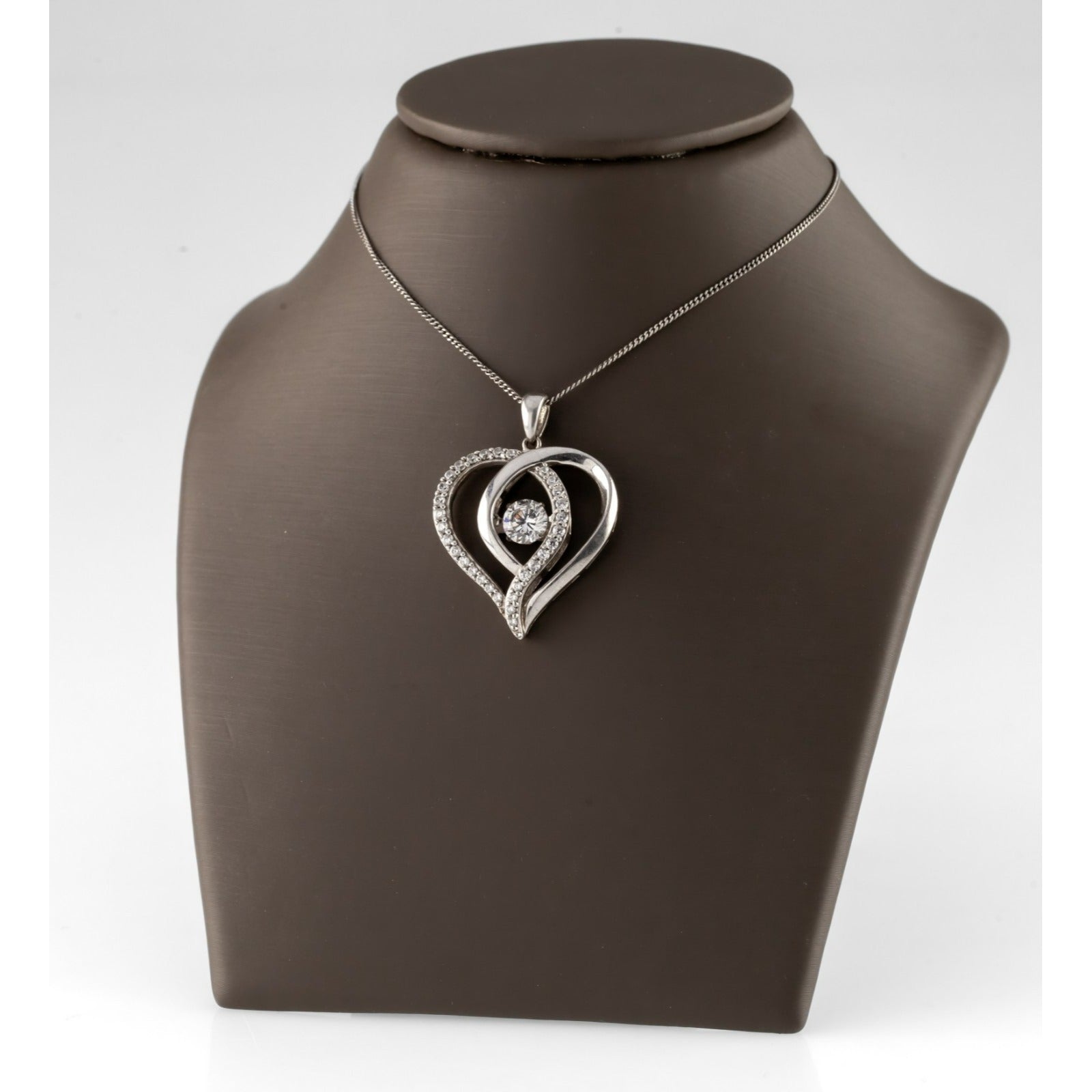 Diamond & Pink Sapphire Heart 14k White Gold Pendant w/ Wire Chain