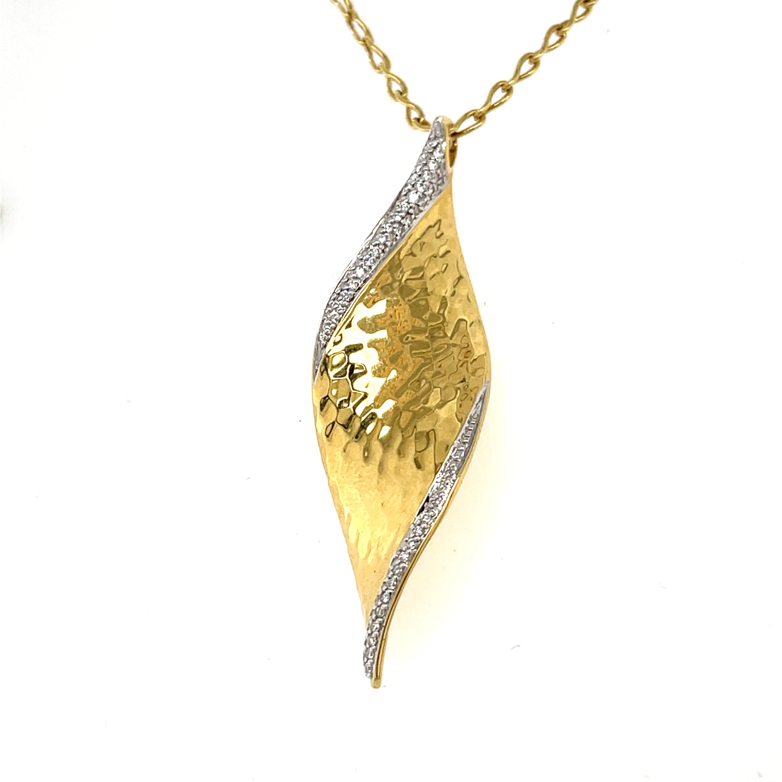 Pendant is a hammered twist design with 0.20 carats of diamonds.