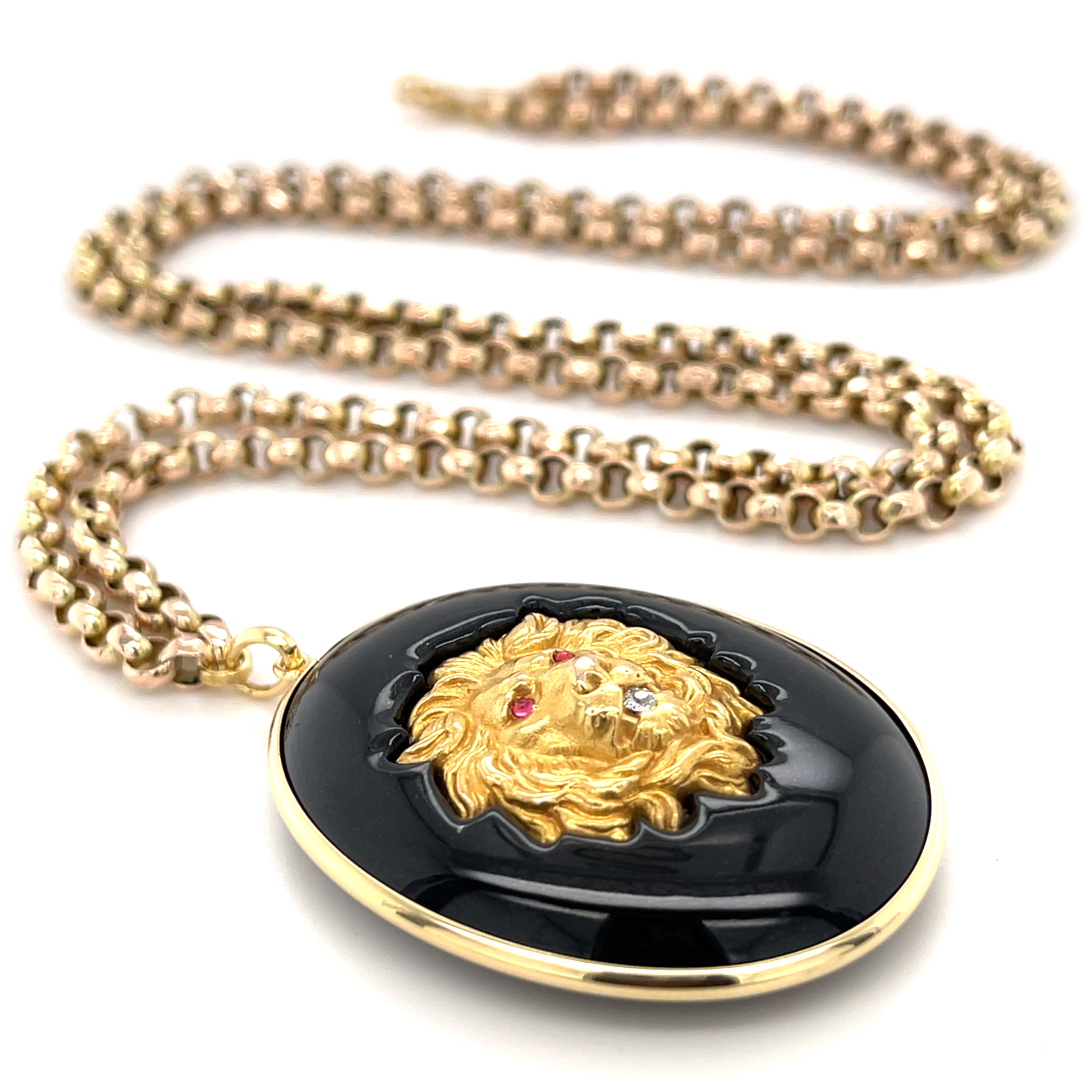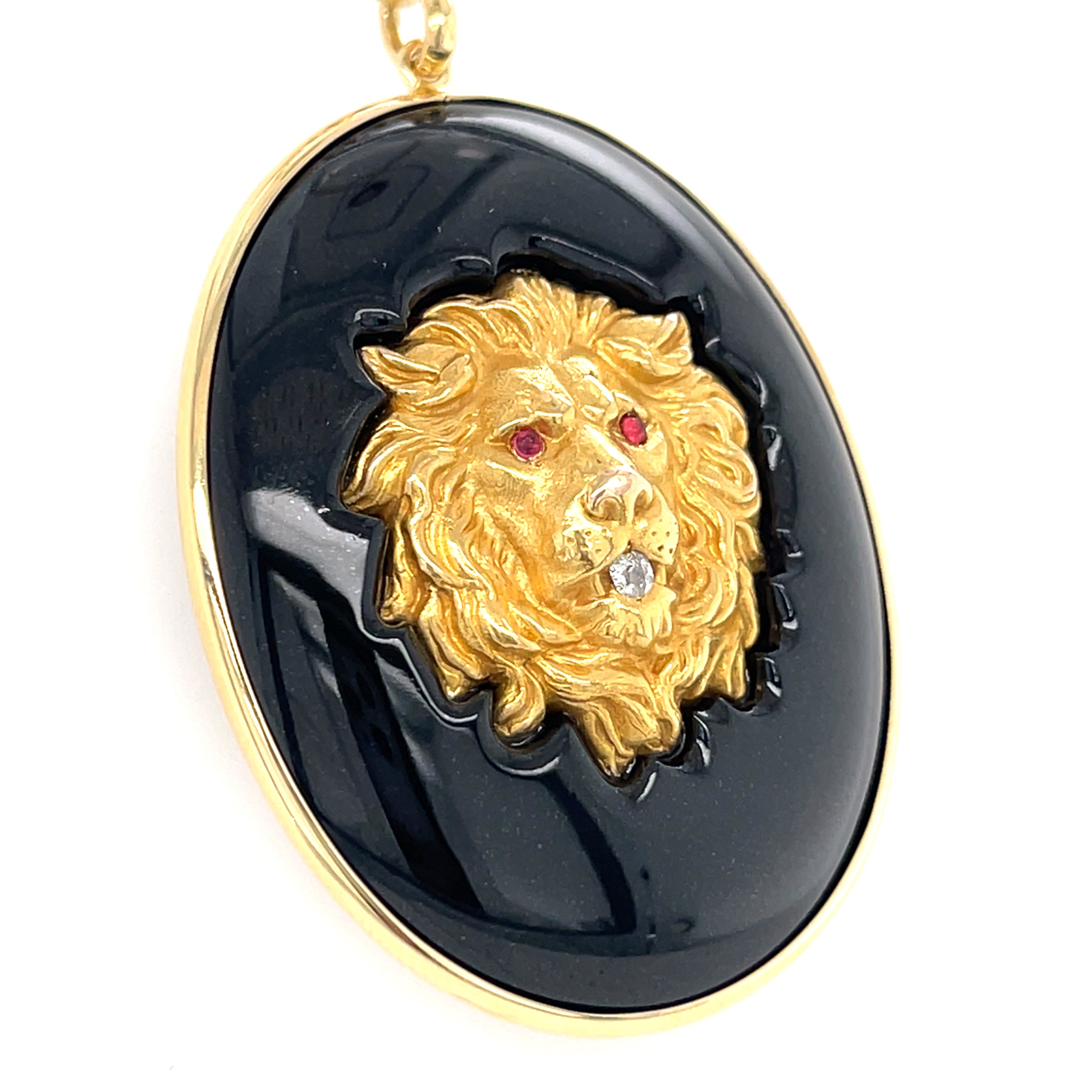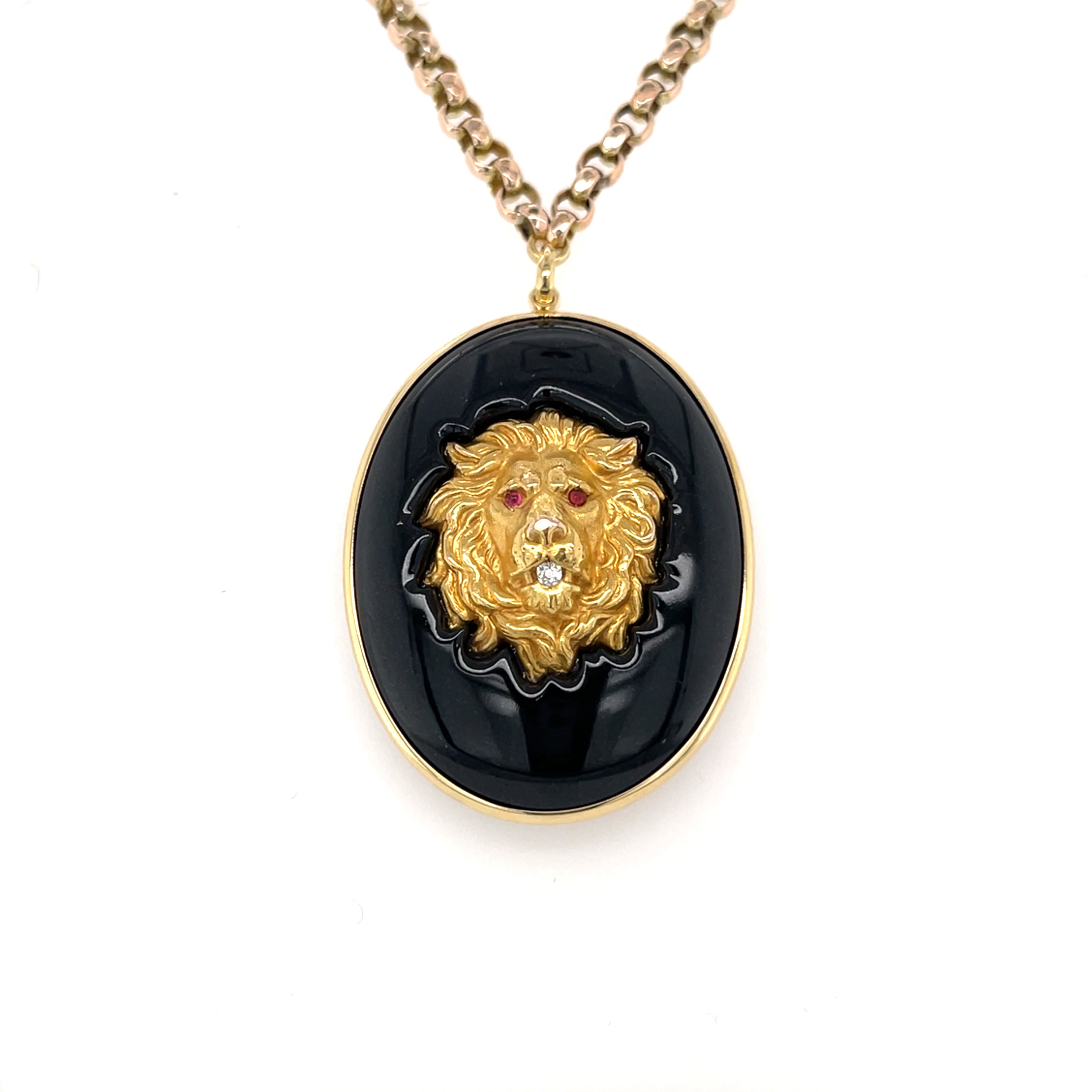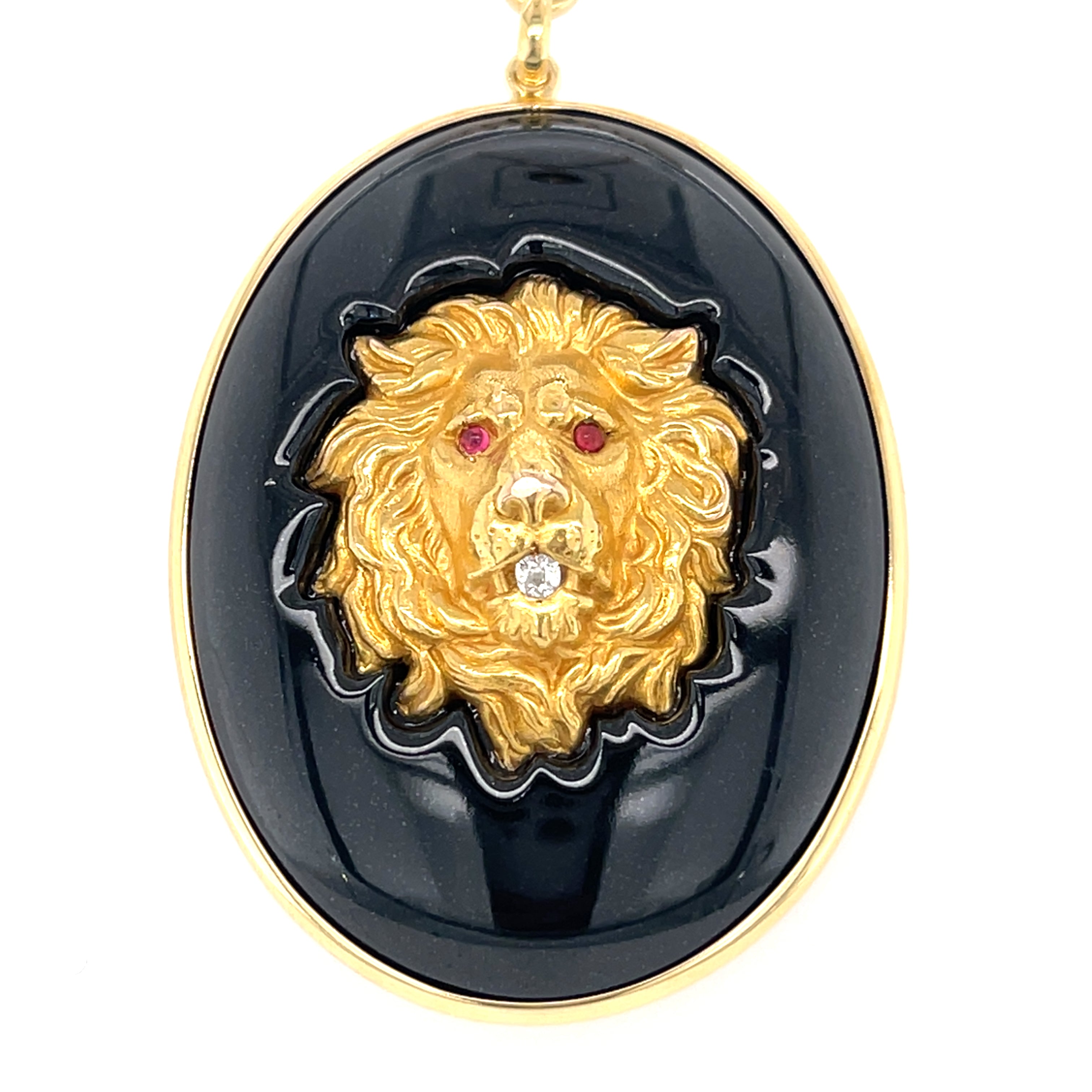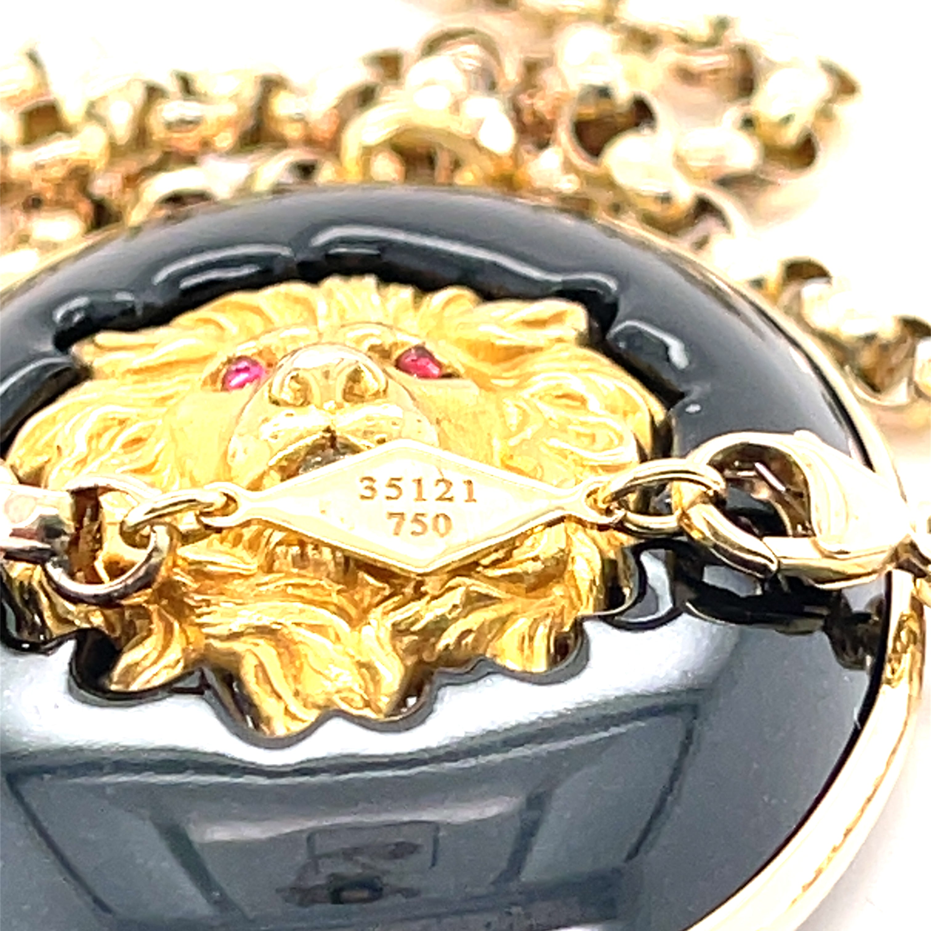 Fred Leighton 18k Gold Lion Portrait Pendant Necklace, Length 30"