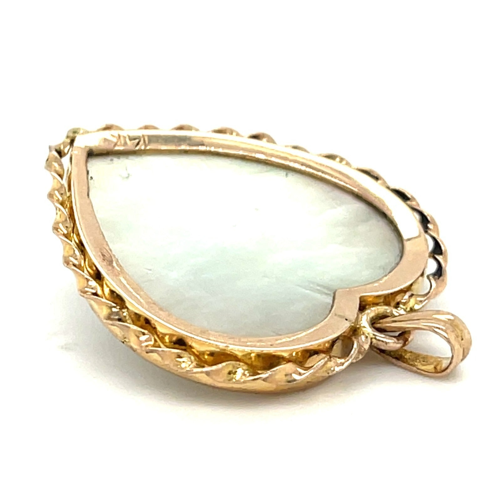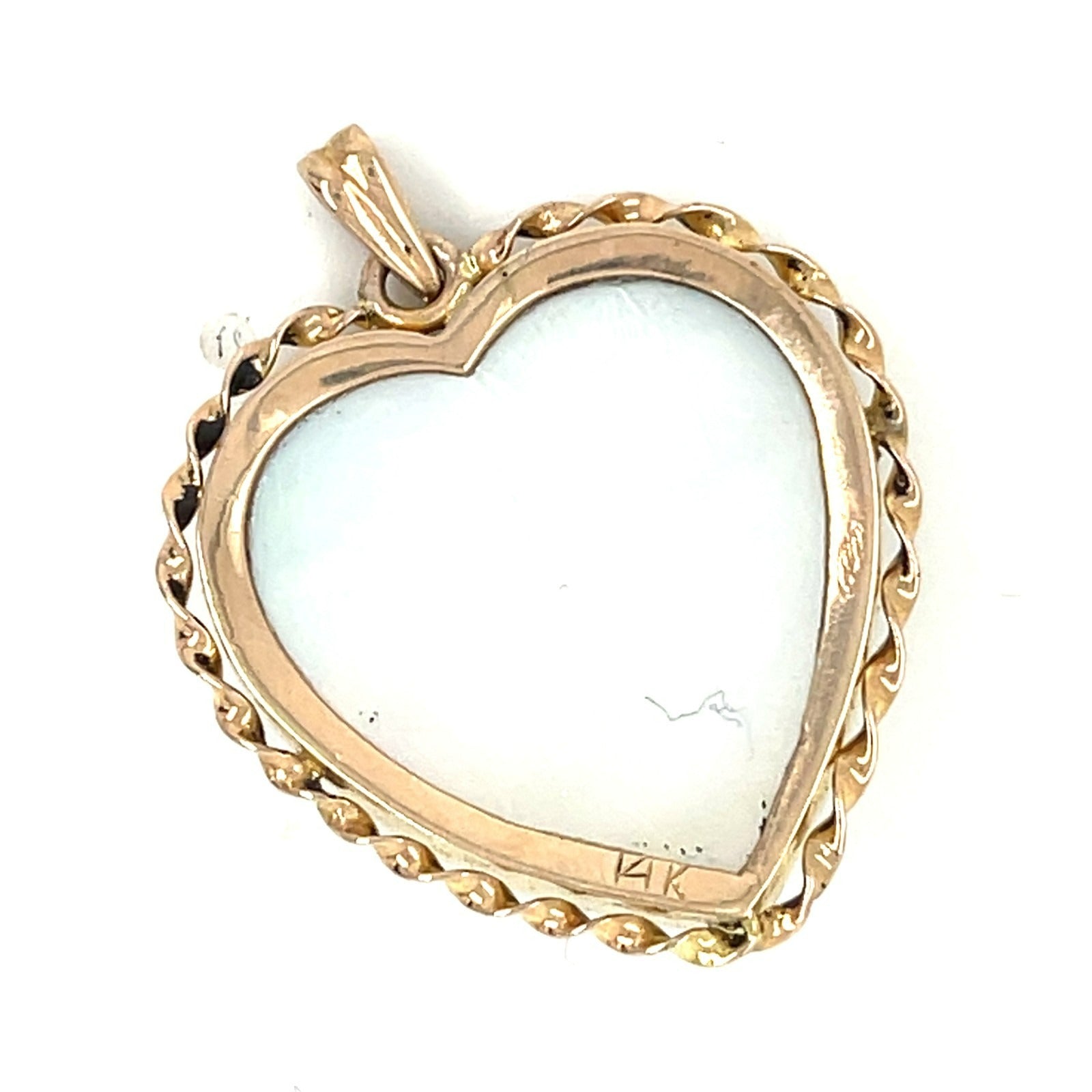 14k Yellow Gold & Blister Pearl Heart Pendant w/ Gold Twist Border, 31mm