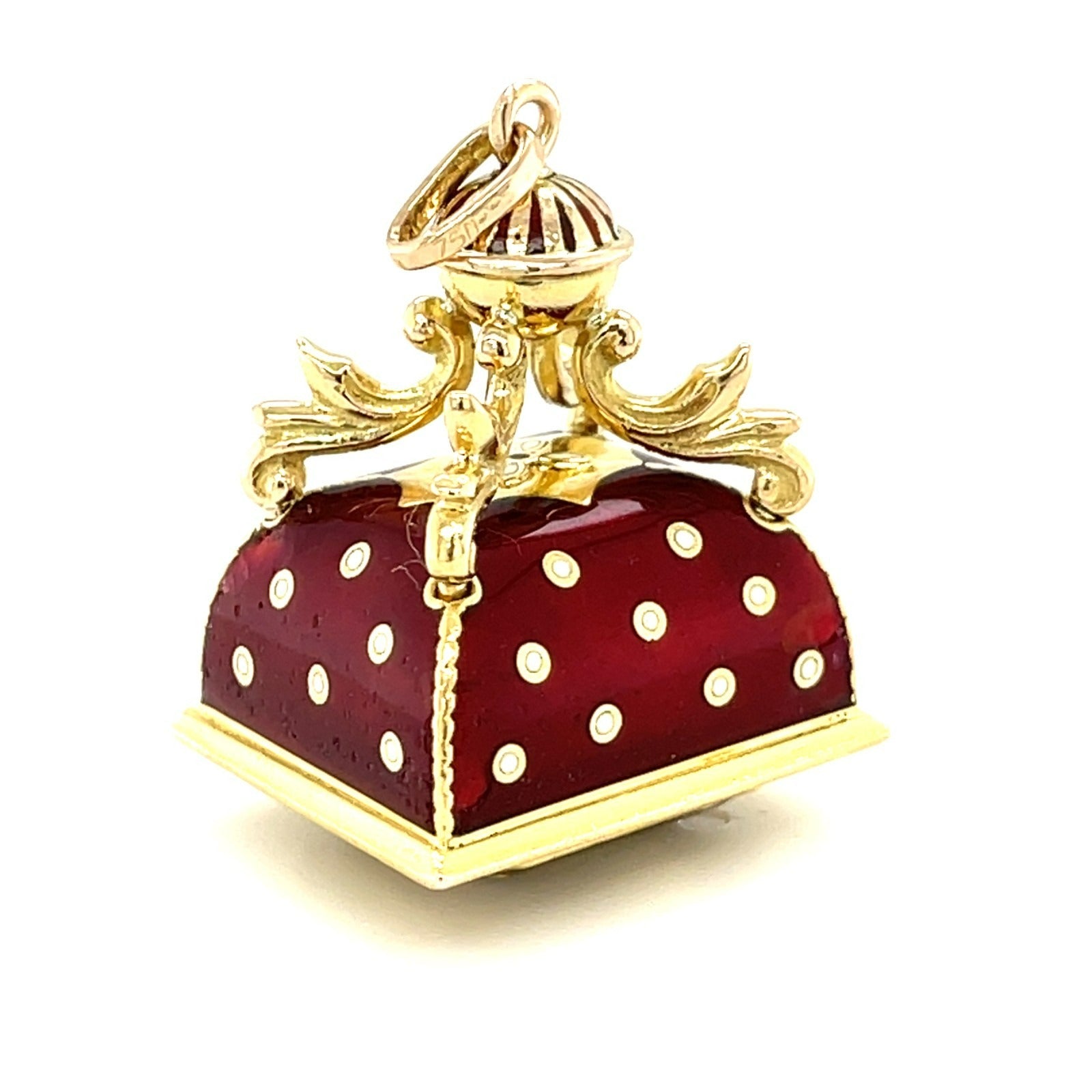 18k Gold & Red Enamel Russian Imperial Style Charm w/ Emerald-Cut Citrine, 14g