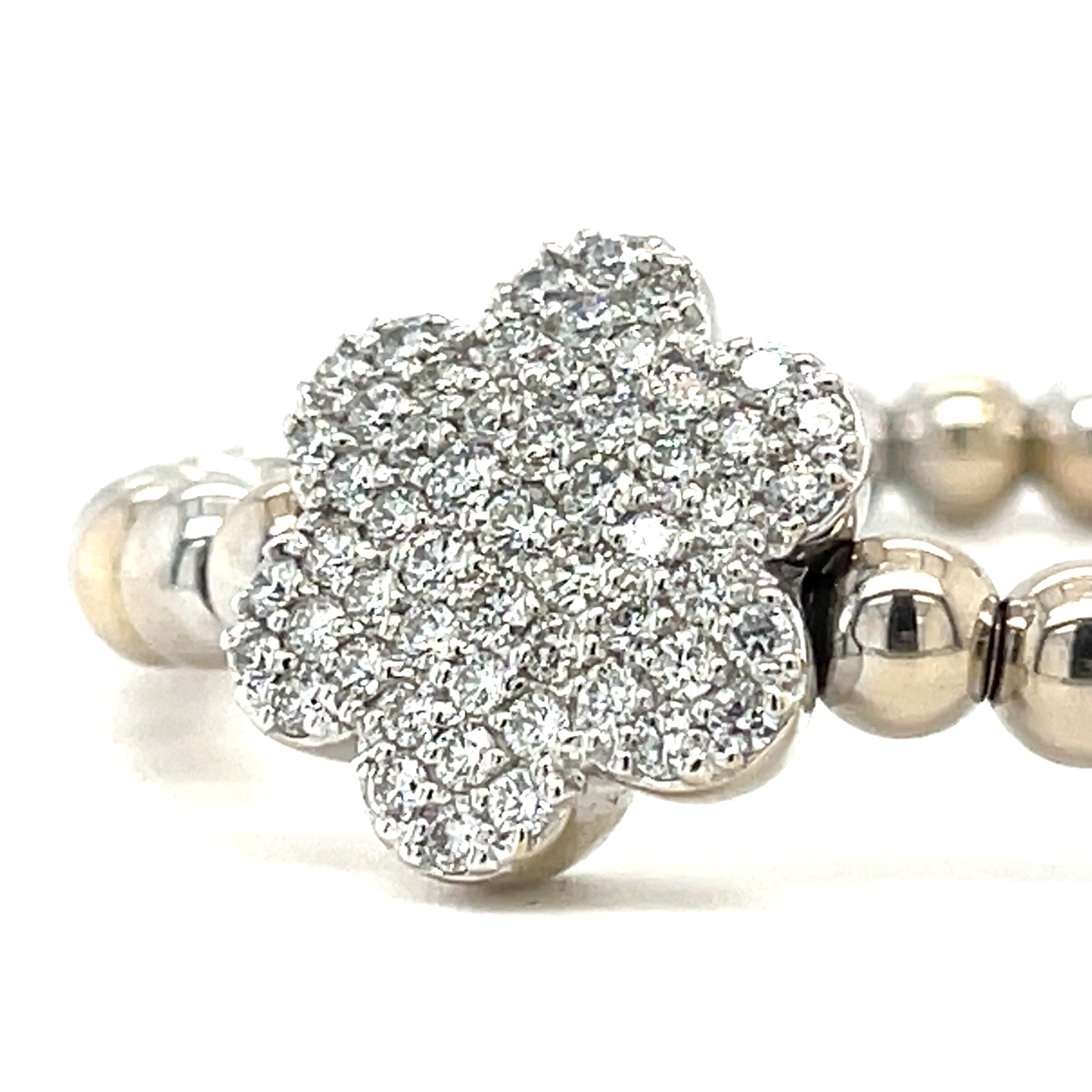 A&G 14k Gold Beaded Flower Stretch Bracelet w/ 1.8ct Pave Diamond Flower