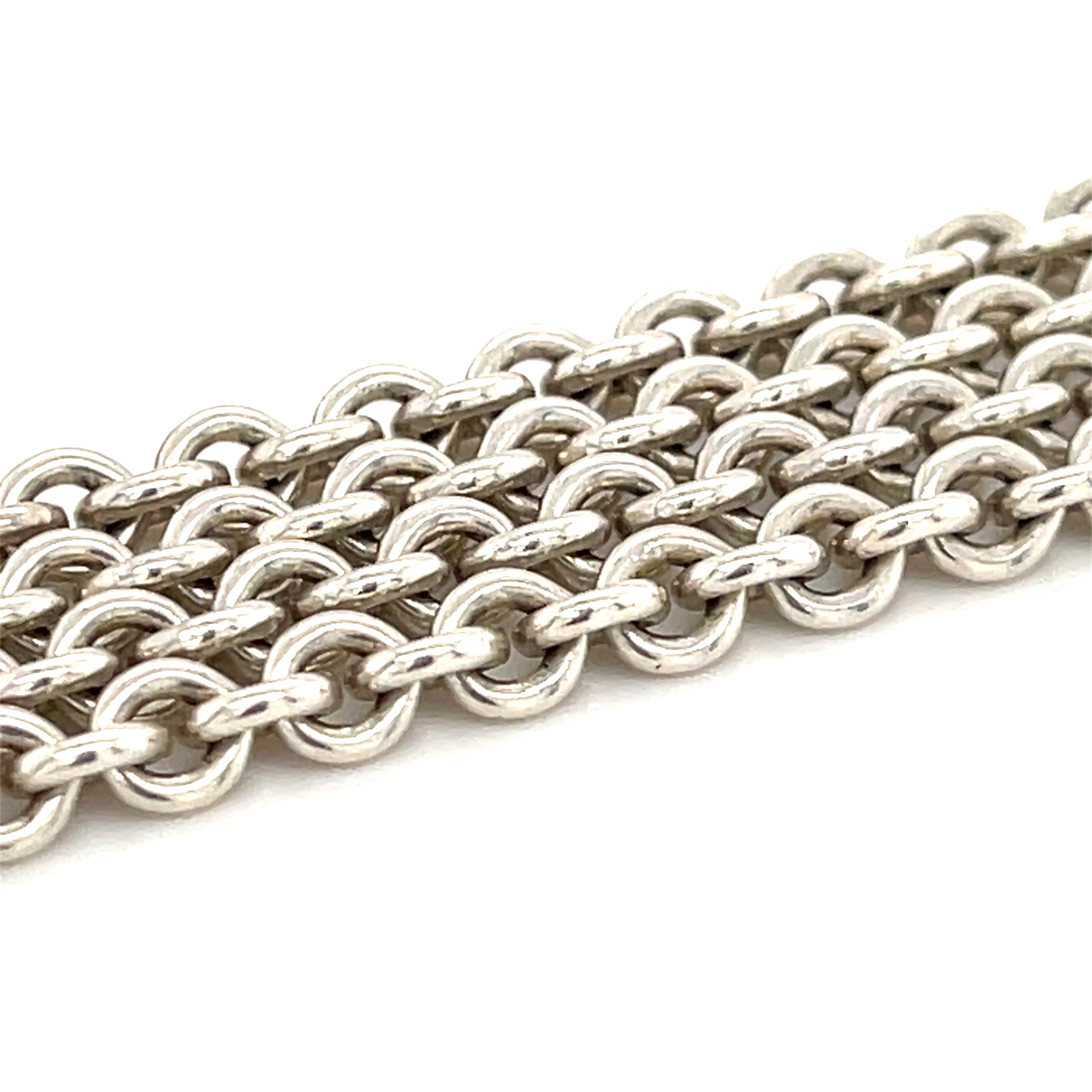 Sterling Silver Cable Cuff Bracelet w/ Blue Accents 7" Long 6 mm Wide 29.0 g