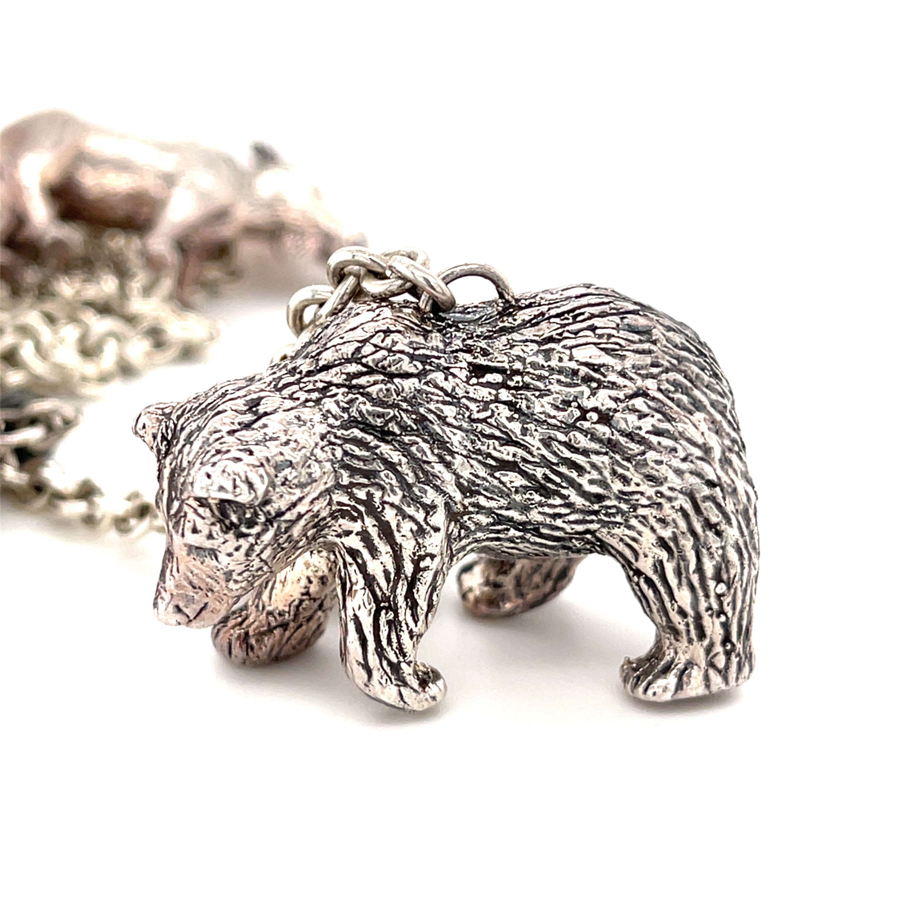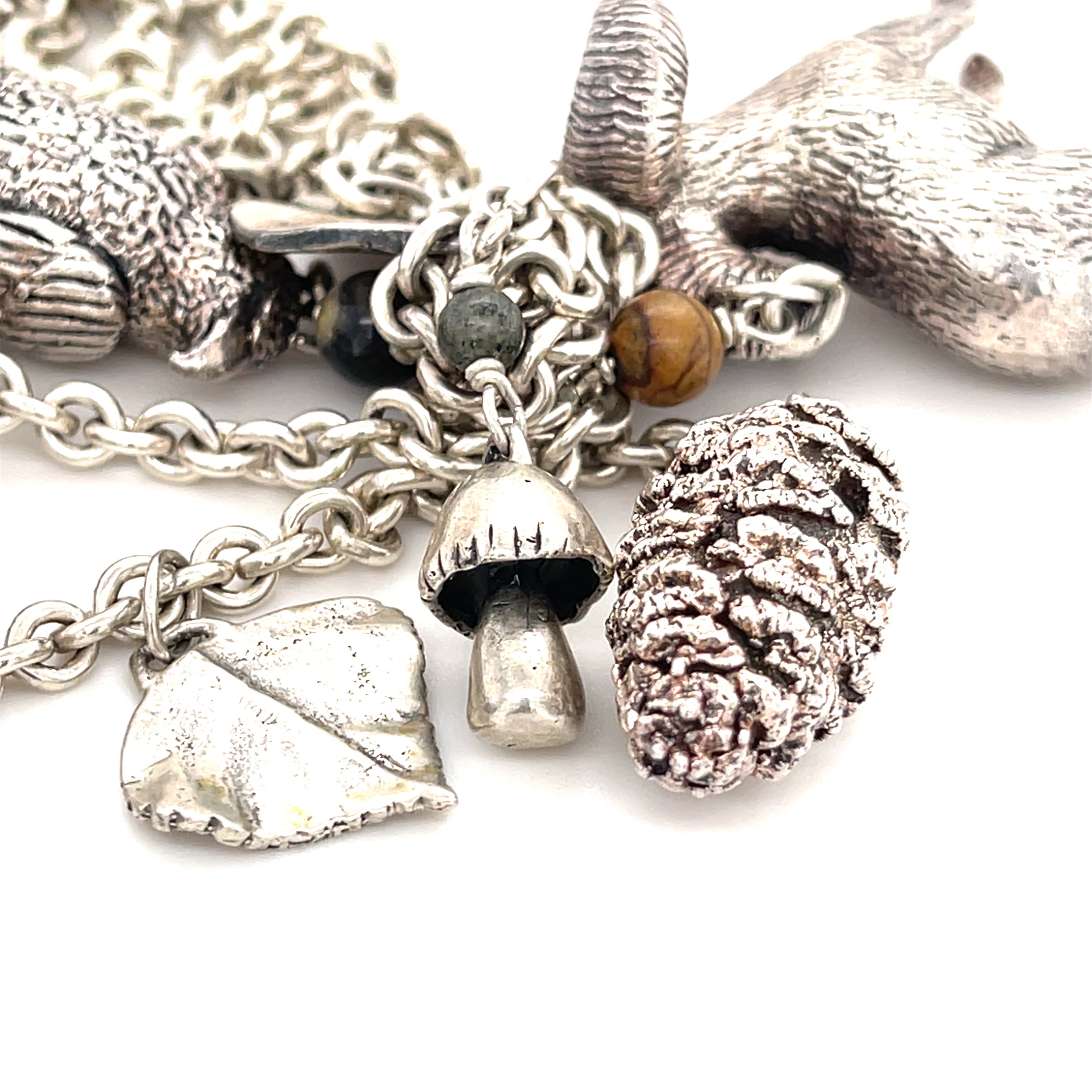 Sterling Silver Chain Necklace with Woodland Critters Charm Pendant, Length 21"