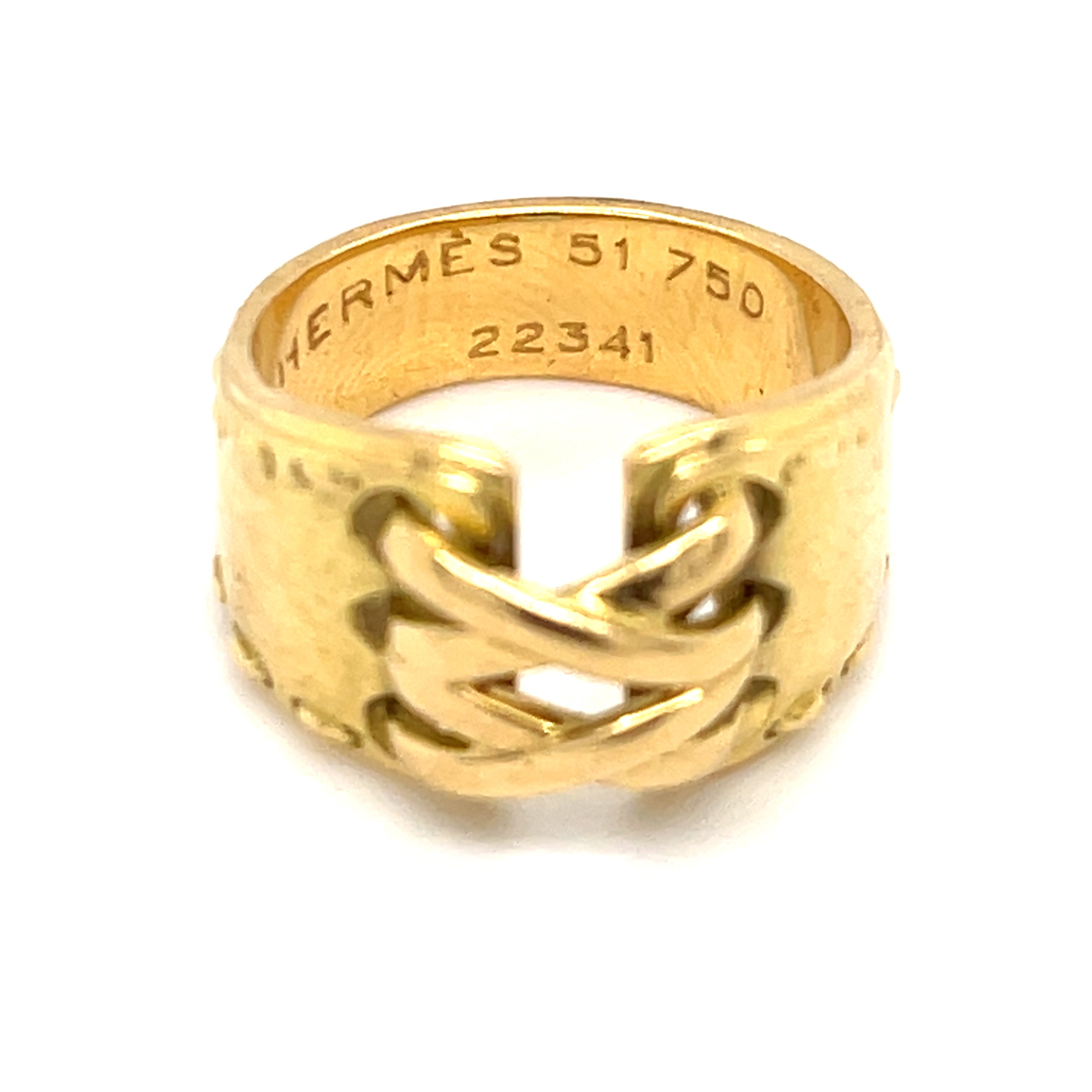 Hermes 18k Yellow Gold Corset Stitch Ring, Size 6, 10.6g.