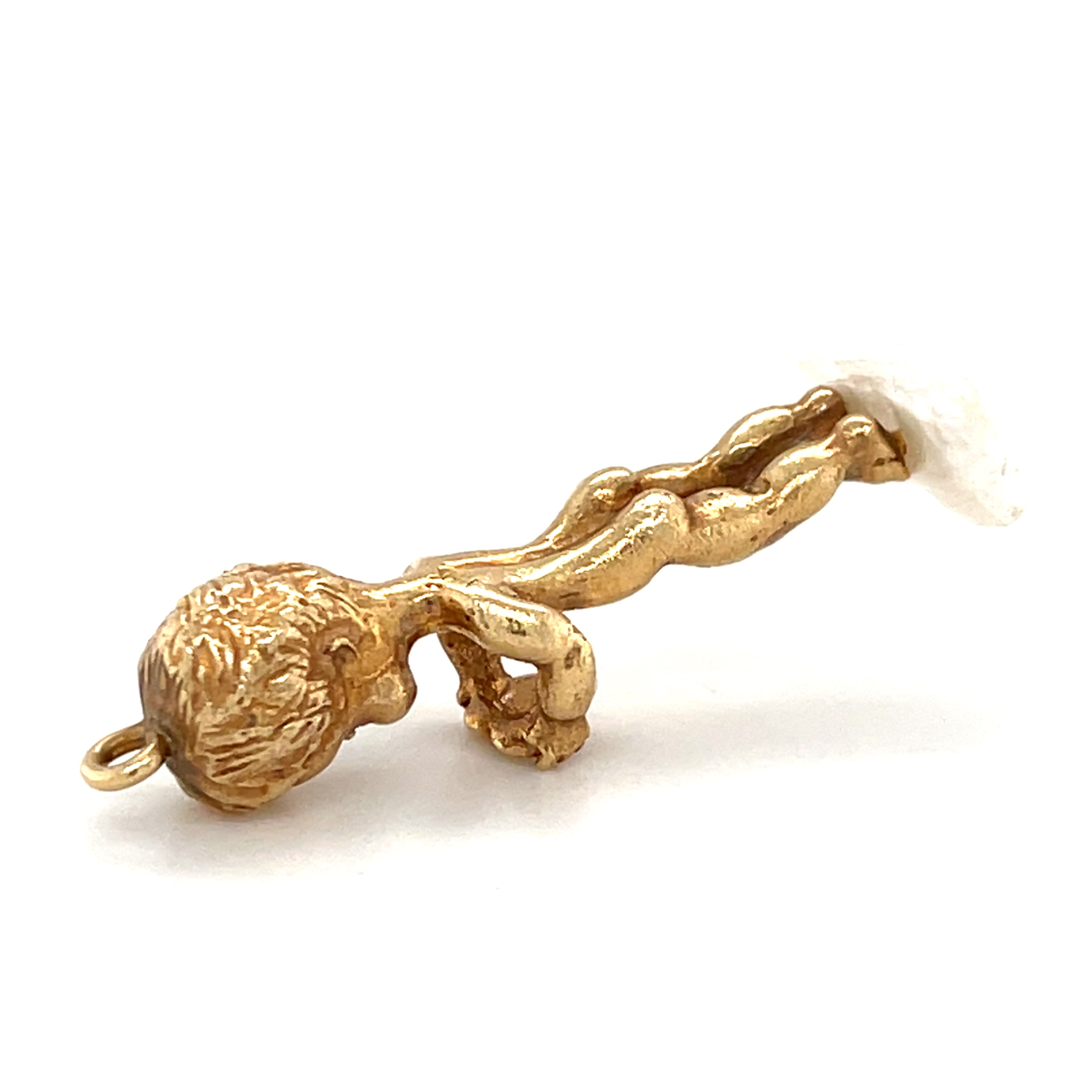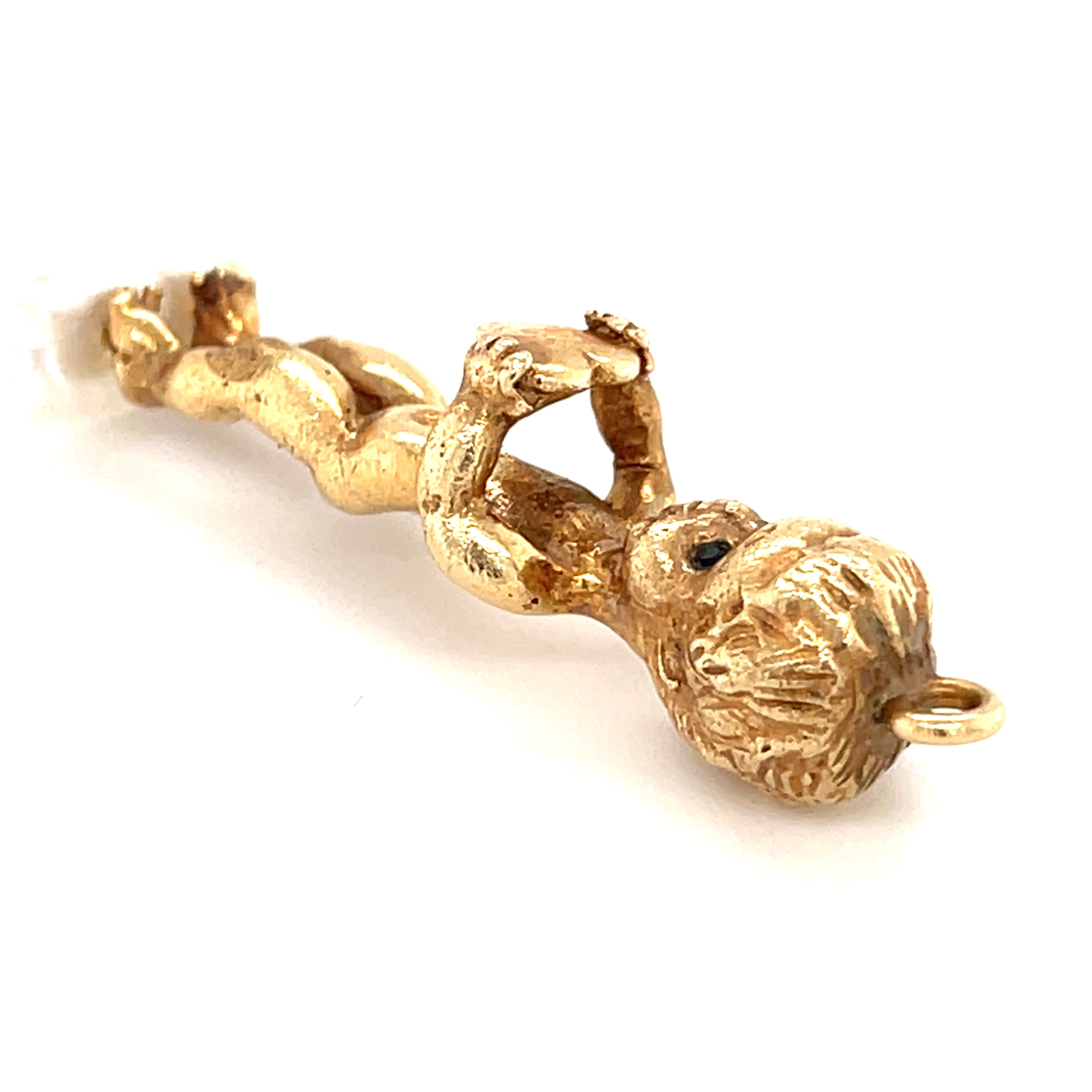 Ruser 14k Gold & Mississippi River Pearl Cherub / Angel Brooch w/ Diamond, Sapphire